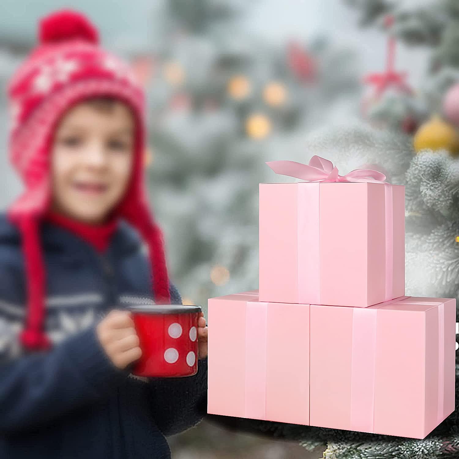 COTOPHER Small Gift Boxes 25 Pack 5x5x5 inches Pink Gift Boxes with Lids for Gifts, Crafting, Wedding Party Favor, Cupcake Boxes, Candy, Bridesmaids Proposal Box with Ribbons and Stickers