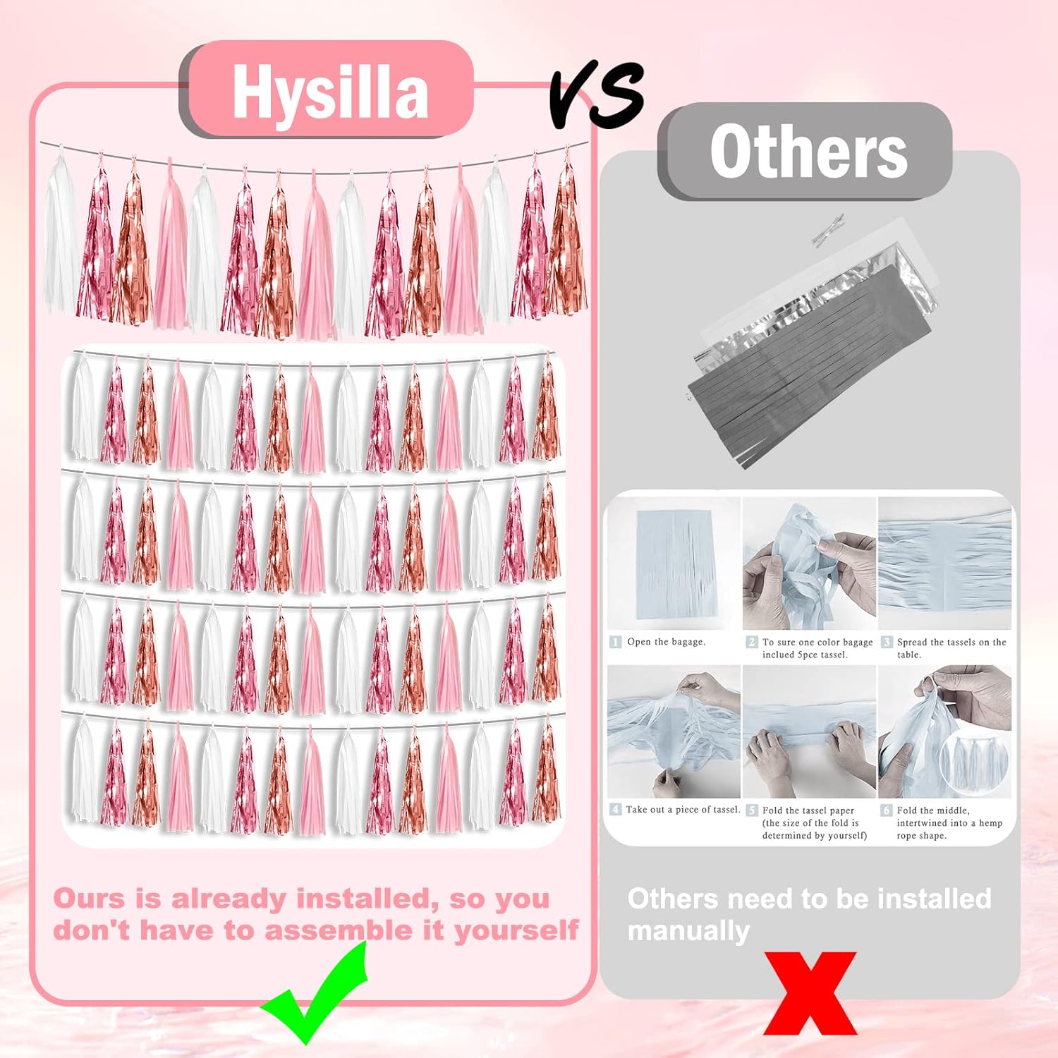 - 【Pink White Peach Rose Gold Party Supplies Set】: The total length of the pink white peach rose gold birthday tassels banner is 26.2 feet, divided into 4 strips, each 6.5 feet long. Each banner contains 15 tassels, and each tassel measures 14 inches, for birthday decorations many occasions, and so on