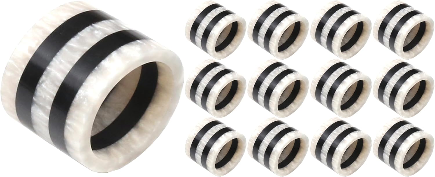 Napkin Rings Set of 12, Resin Round Napkin Holders for Cloth Napkins, Elegant Serviette Rings for Dinner Parties, Weddings, Holiday Décor, Modern Dining Accessories (Black White) - ALPHA Living HOME