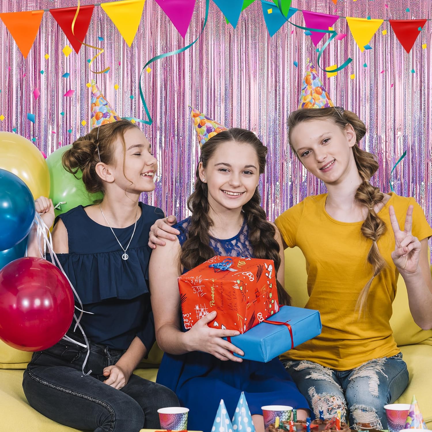 Crosize 2 Pack 3.3 x 9.9 ft Pink Foil Fringe Backdrop Curtain, Streamer Backdrop Curtains, Streamers Birthday Party Decorations, Tinsel Curtain for Parties, Galentines Decor, Preppy, Photo Booth