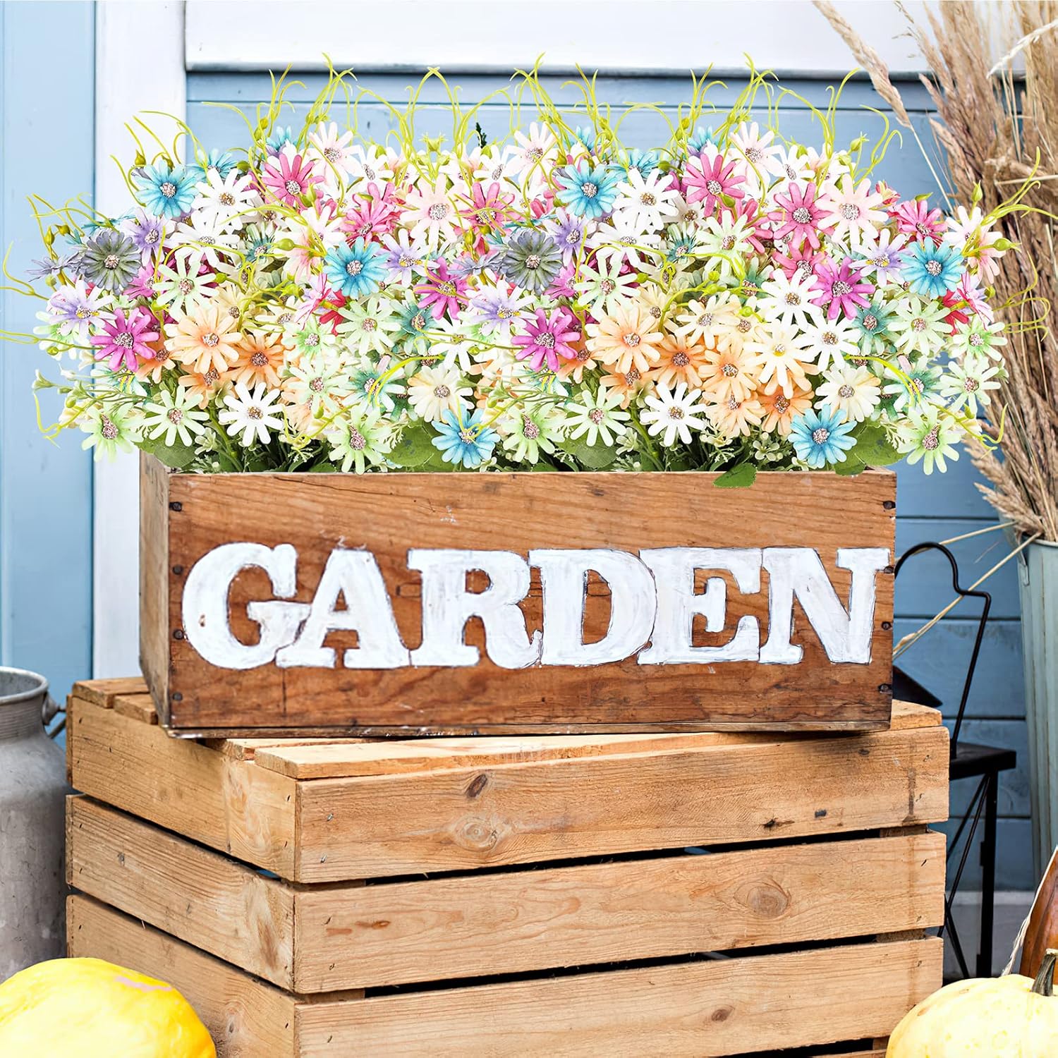 - Attention: Artificial daisies ONLY, vase not included. The flowers will be crowded when you receive them. After shaking it, the flowers will be scattered naturally. If some flowers fall, please don't worry, you can "assemble" them