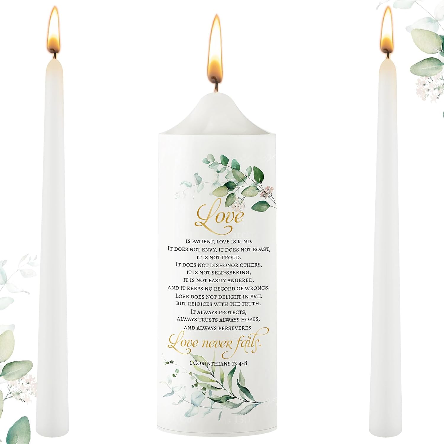 - Eucalyptus Design: the verse on the candle reads, and cross elements; And the design is romantic and modern, making your table decor more eye catching