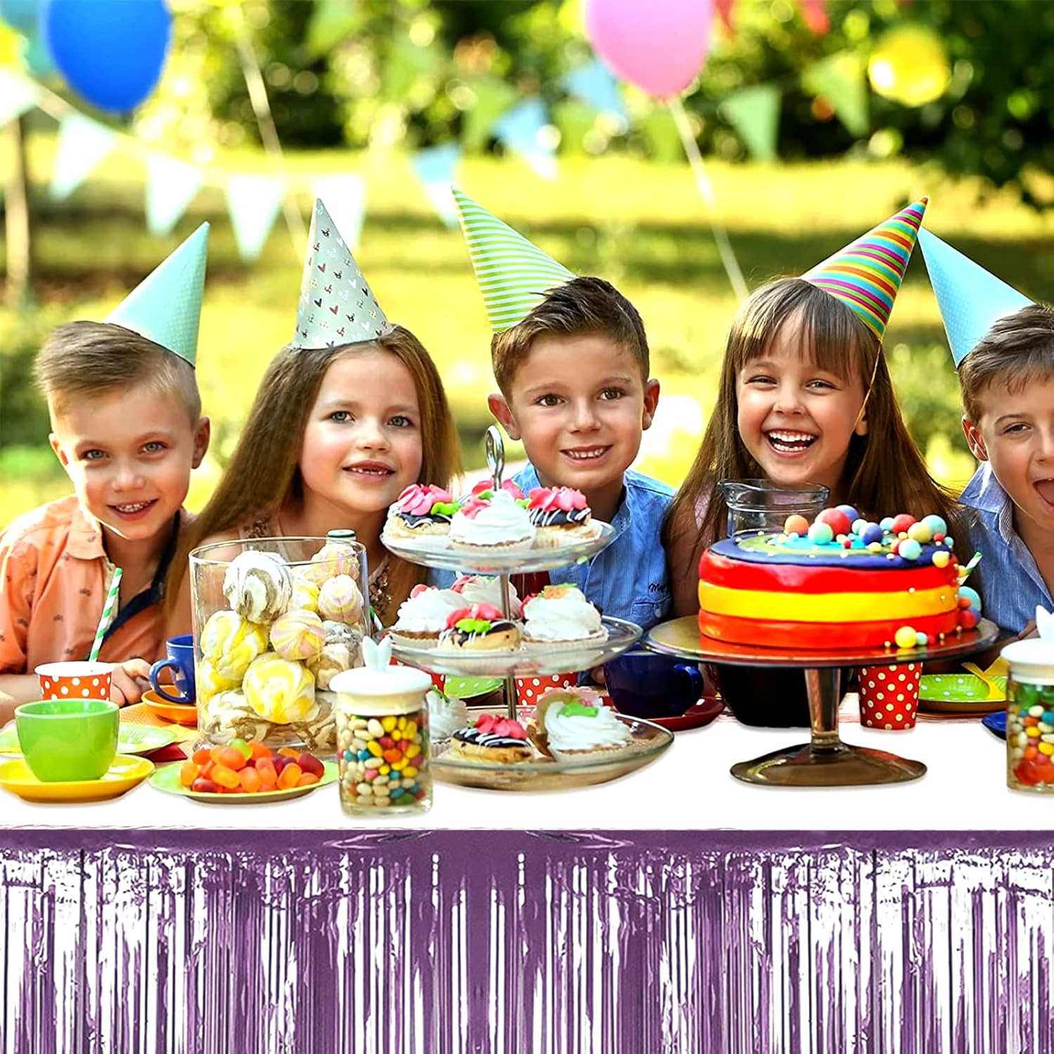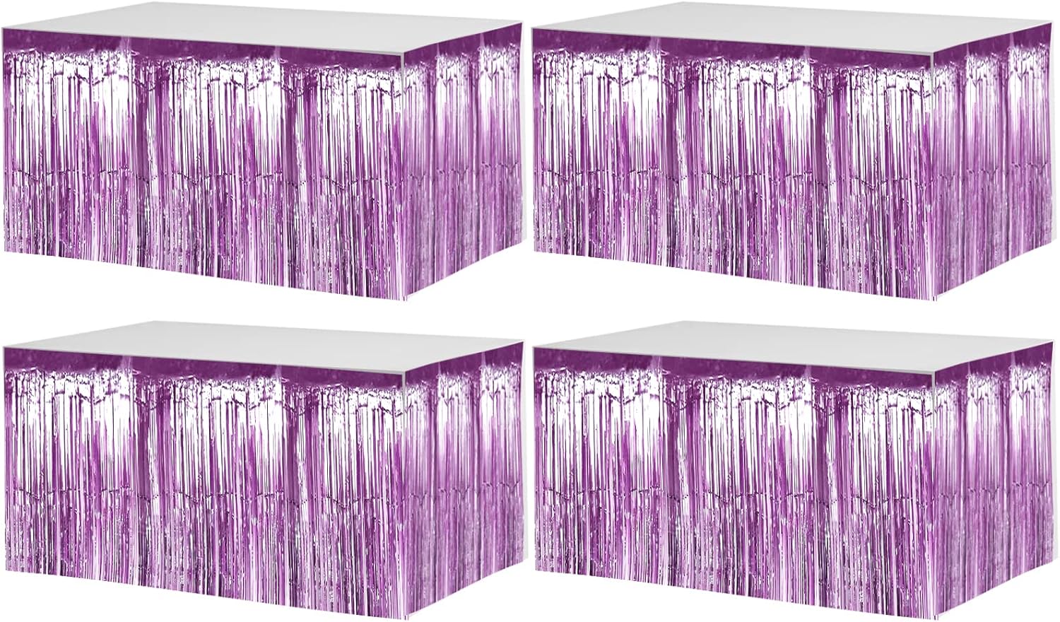 4 Pack 29x108 Inch Metallic Foil Fringe Tinsel Table Skirts for Rectangle Tables Streamer Backdrop for Wedding, Birthday, Parade Floats, Christmas, Halloween Party Decoration(New Light Purple)