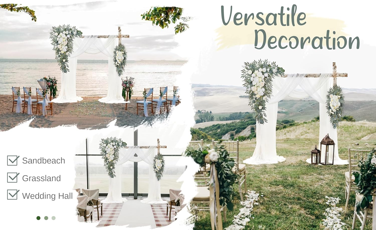 - VERSATILE DECOR: Extend the use beyond your wedding. The draping fabrics and garlands can adorn stair railings; tables and other elements of your home decor. It is not only a witness to your wedding, but also will continue to witness your happy life