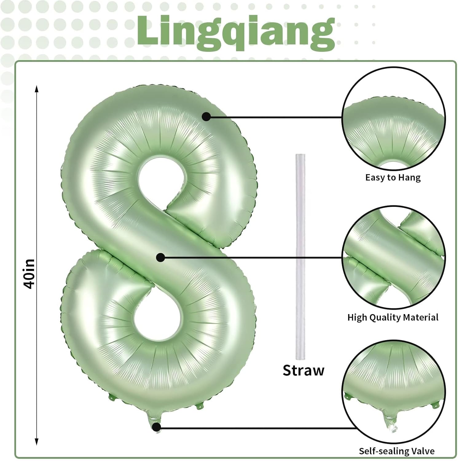 - π Sage Green Number 8 Balloon π - You will get 1pc 40 inch mylar foil number 8 balloon and 1pc straw. Perfect for 8th 18th 28th 80th 85th birthday or anniversary party decorations supplies.