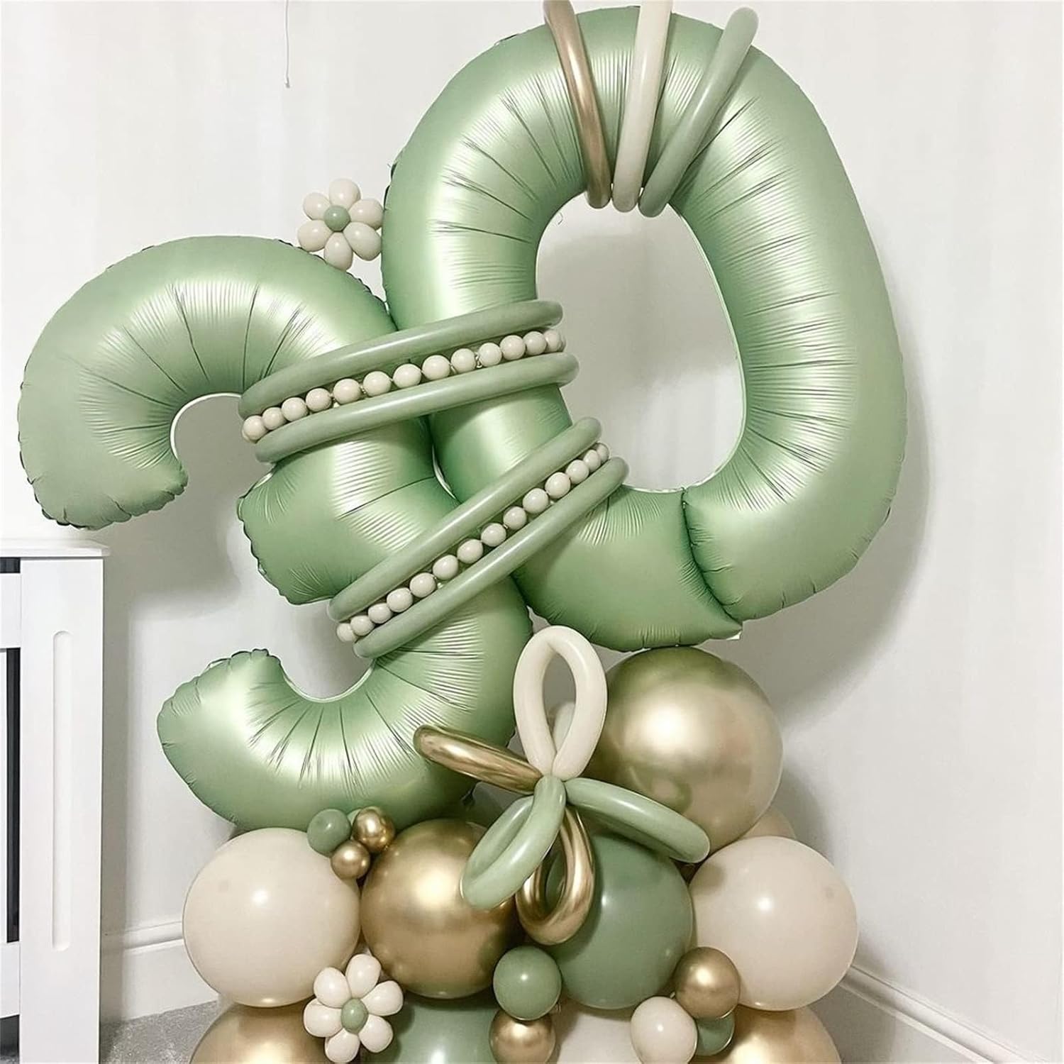 - π Easy to Inflate π - The big sage green number 8 foil balloons have self-sealing valve does not need to be knotted for easy inflation and deflation. It can be inflated with air or helium. When filled with helium, the balloons can float in the air; after filling, press the valve of the digital balloon to seal it. It can be reused. Do not throw away after use!