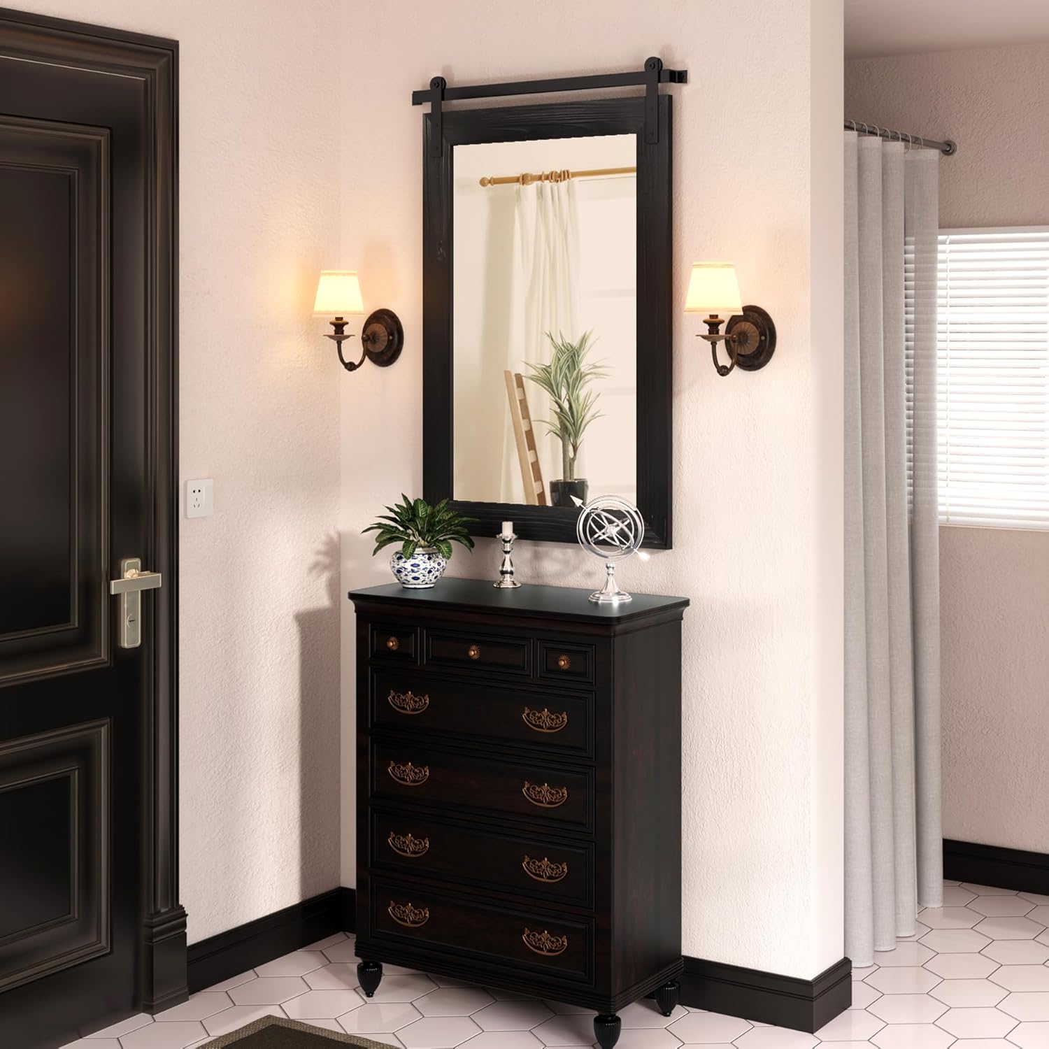 COGOOD Farmhouse Barn Door Mirror - 38 X 25 Rustic Bathroom Mirror for Living Room, Entryway, Vanity Wall Decor (Black)