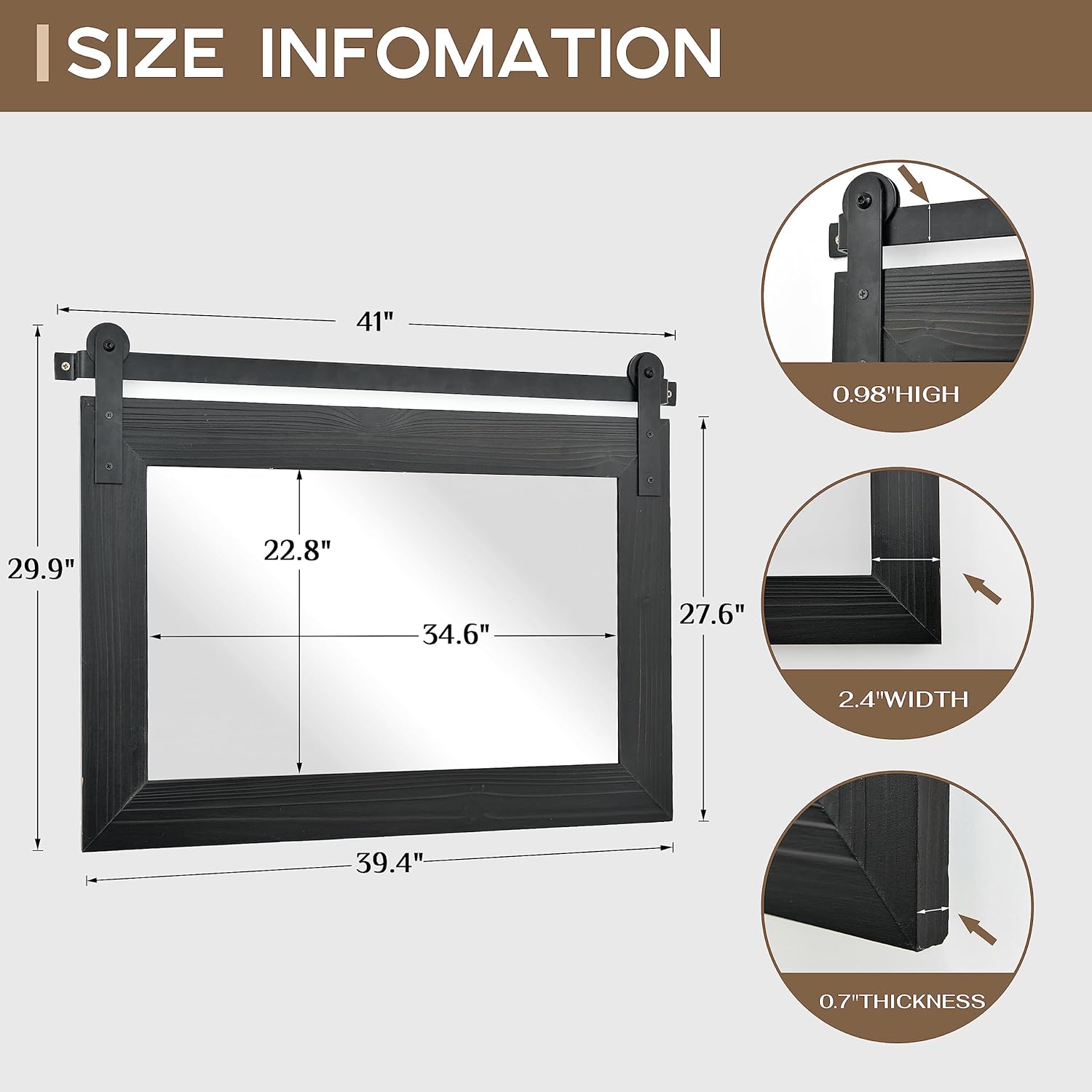 COGOOD Farmhouse Bathroom Mirror - 41" x 30" Rustic Barn Door Mirror for Living Room, Entryway, Bedroom, Vanity Wall Decor (Black)