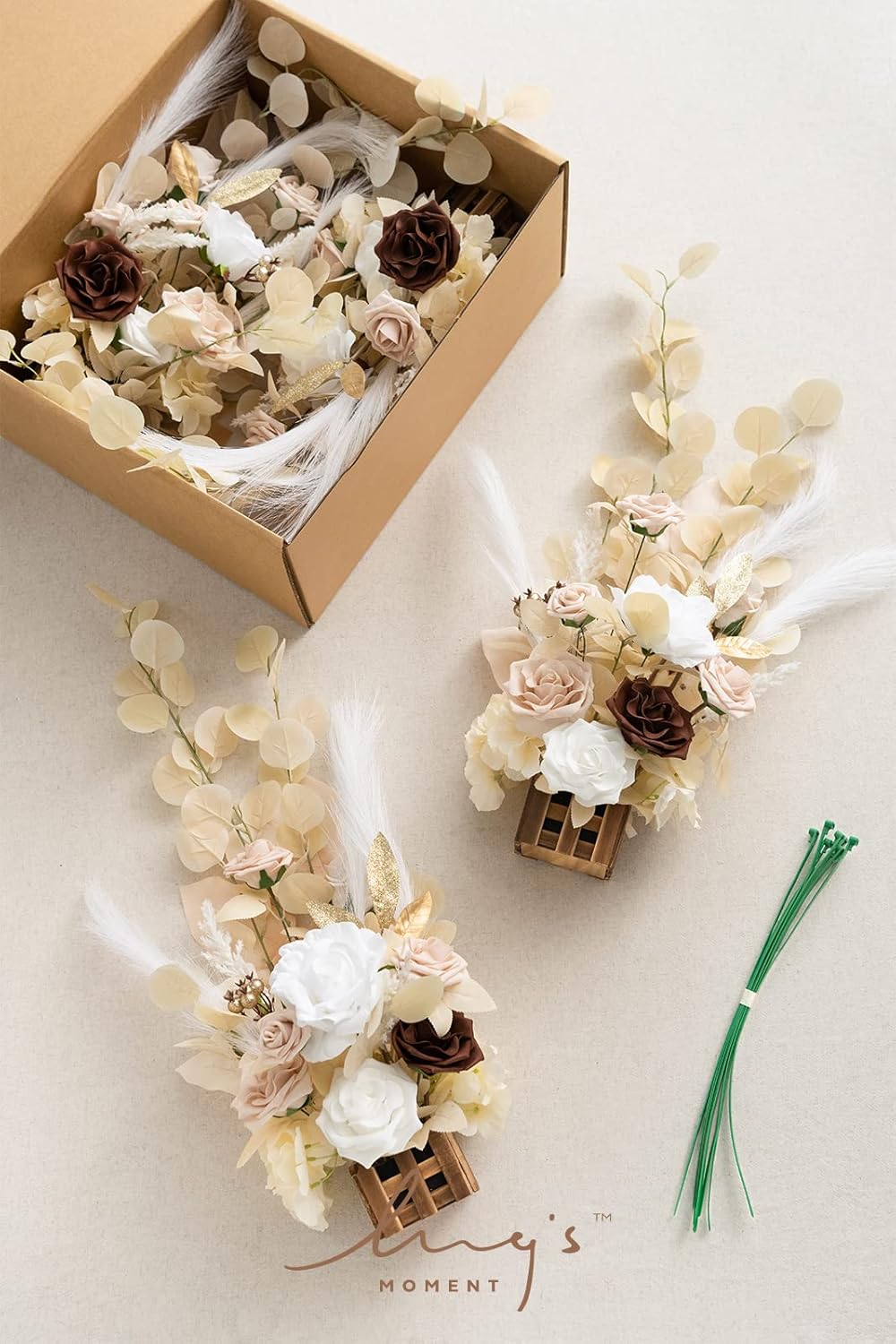 - WEDDING FLORAL DECOR DETAILS: Free-standing flower arrangement x 4, green fixture zip x 4, helps to create a romantic autumn, boho beige or winter wedding. These pre-made floral arrangements are perfect for decorating the wedding aisle, welcome entrance, table centerpieces, and wedding arch decor.