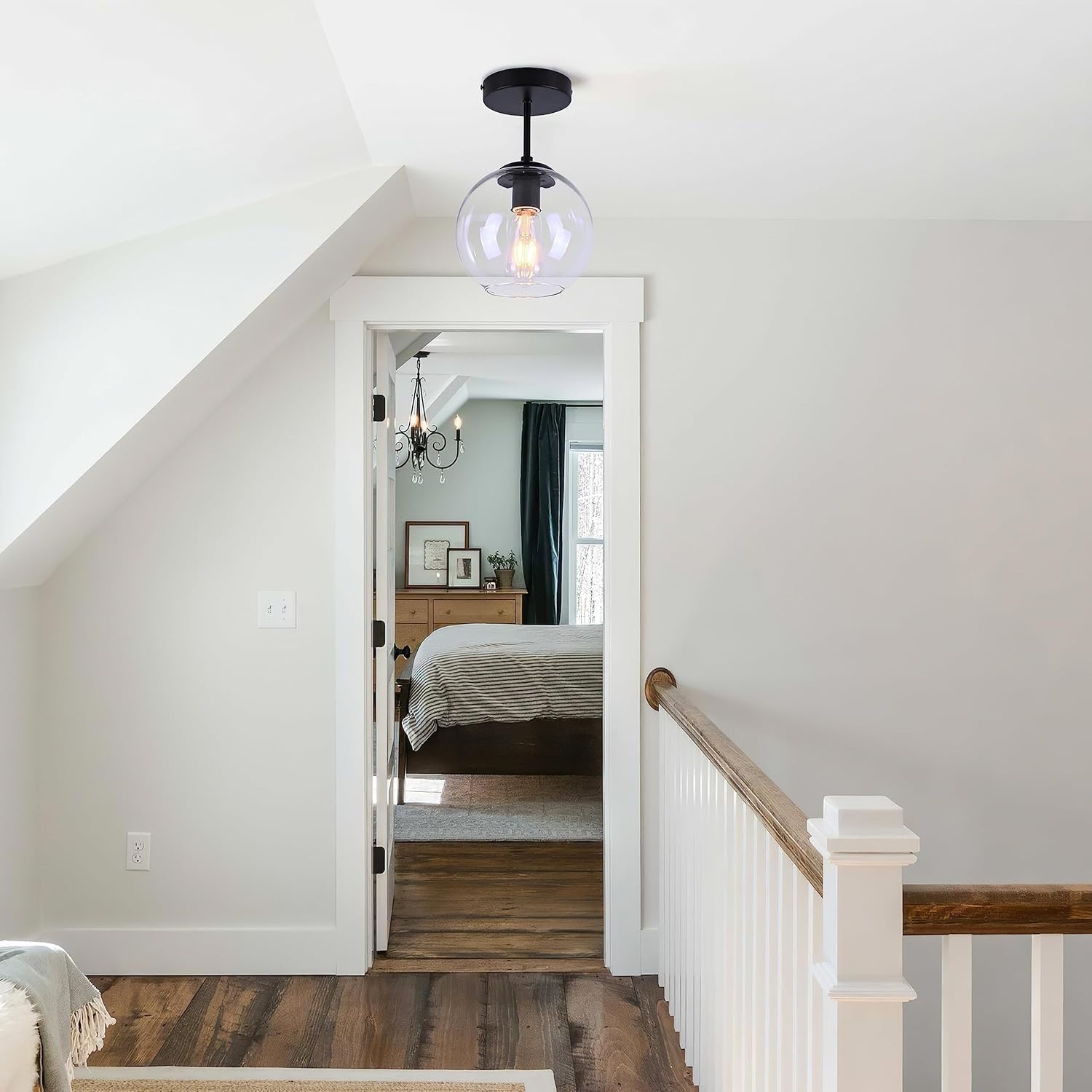 Black Semi Flush Mount Ceiling Light Fixture with Clear Glass Light Fixture Mid Century Light Fixtures Black Semi Flush Ceiling Light Fixtures for Dining Room Kitchen (Bulb Included)