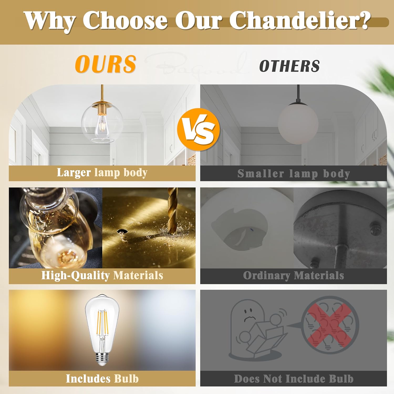 - [Bulbs Included & Dimmable]:The clear glass globe light fixture designed with 1 x E26 socket with a max power of 60W. When you buy other dimmable bulbs and combine it with a wall dimmer(not included) it can be fully dimmable. so you can use this fixture with confidence