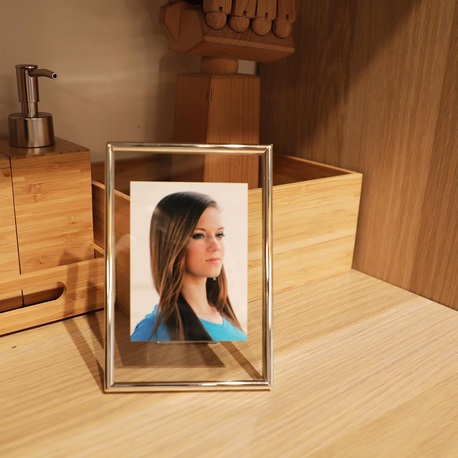 - 【Romantic Design】A silver metal frame with heart-shaped stand(Put you in my heart) and transparent glass, making it looks very romantic and elegant. It appears that the photo has a floating effect on it, So you can focus on the photo.