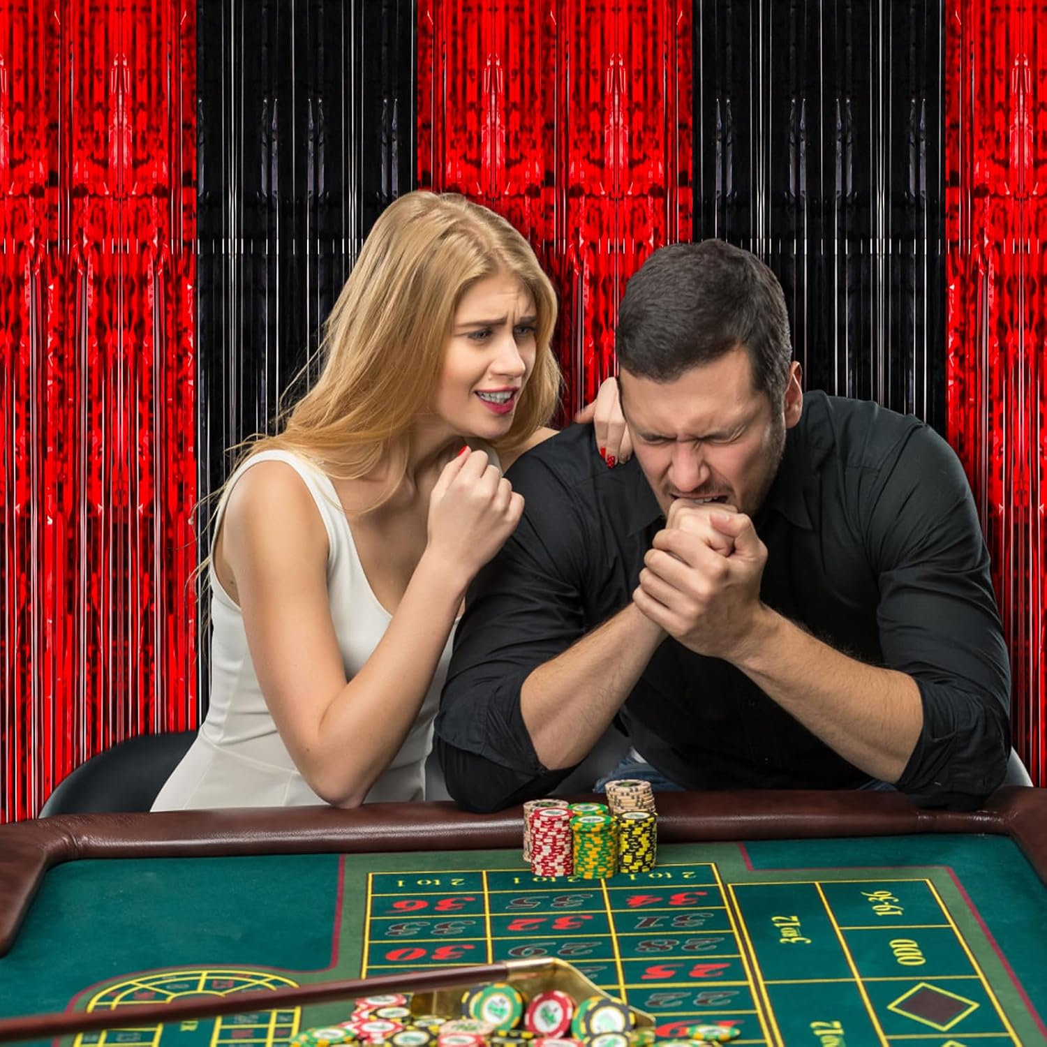 3 Pack 3.3x8.2 Feet Red and Black Foil Fringe Backdrop Curtains, Tinsel Streamers Birthday Party Decorations, Fringe Backdrop for Graduation, Casino, Red Carpet, Halloween Party