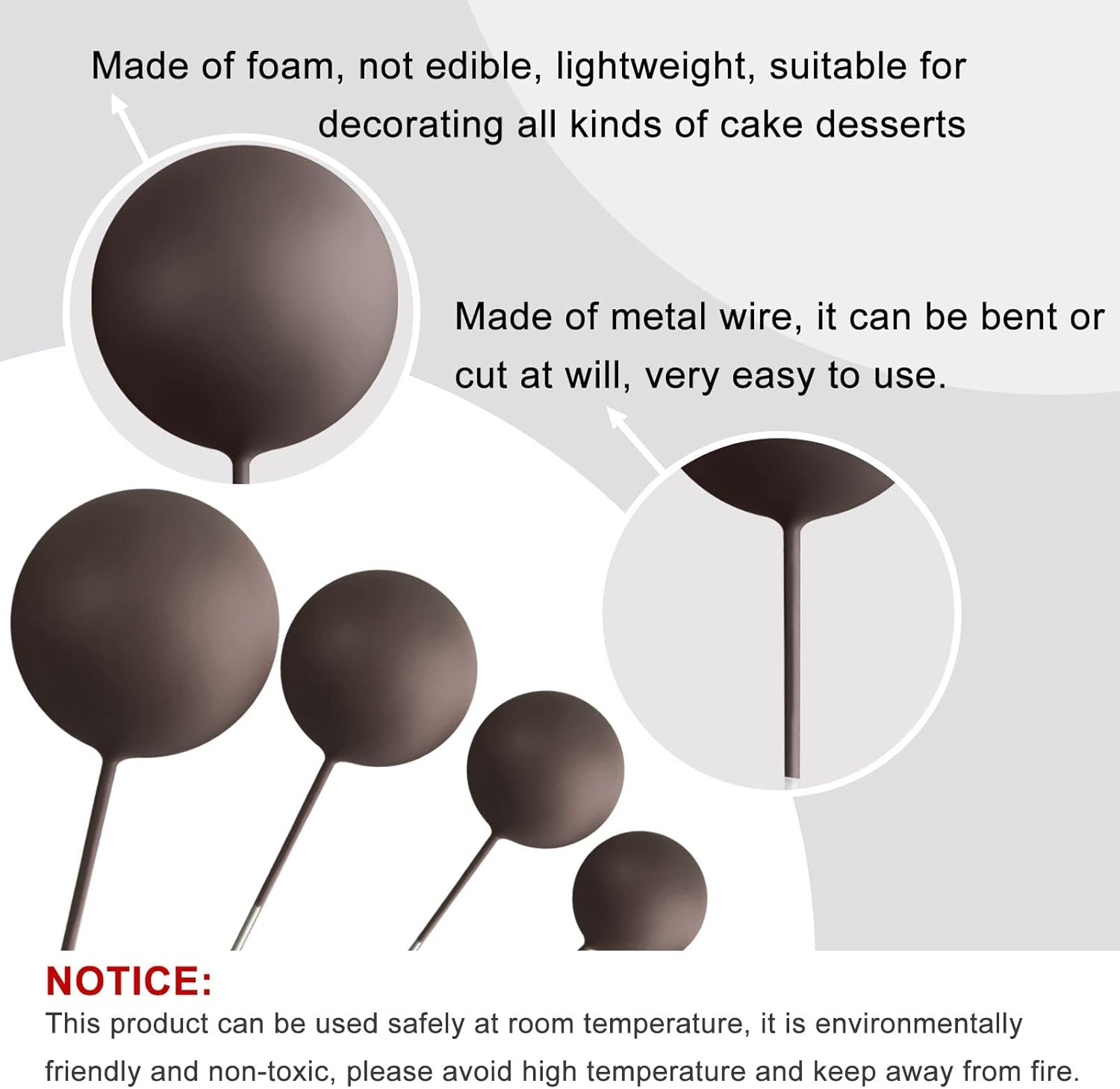 - Premium Material: These Ball Cupcake Toppers are made of foam and wire. Safe to decorate food at room temperature, such as cake or dessert decorating use, or cupcakes, fruits, cheese and any dish and appetizer you want to decorate.