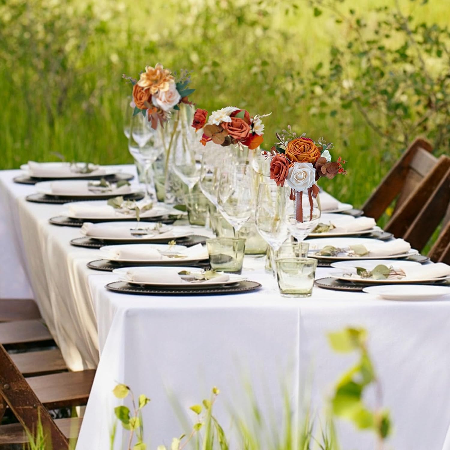 - Pre-made floral arrangements : This is a set of 6 flower centerpieces,add a touch of beauty to your wedding tables with burnt orange centerpieces instantly enhance your wedding decor