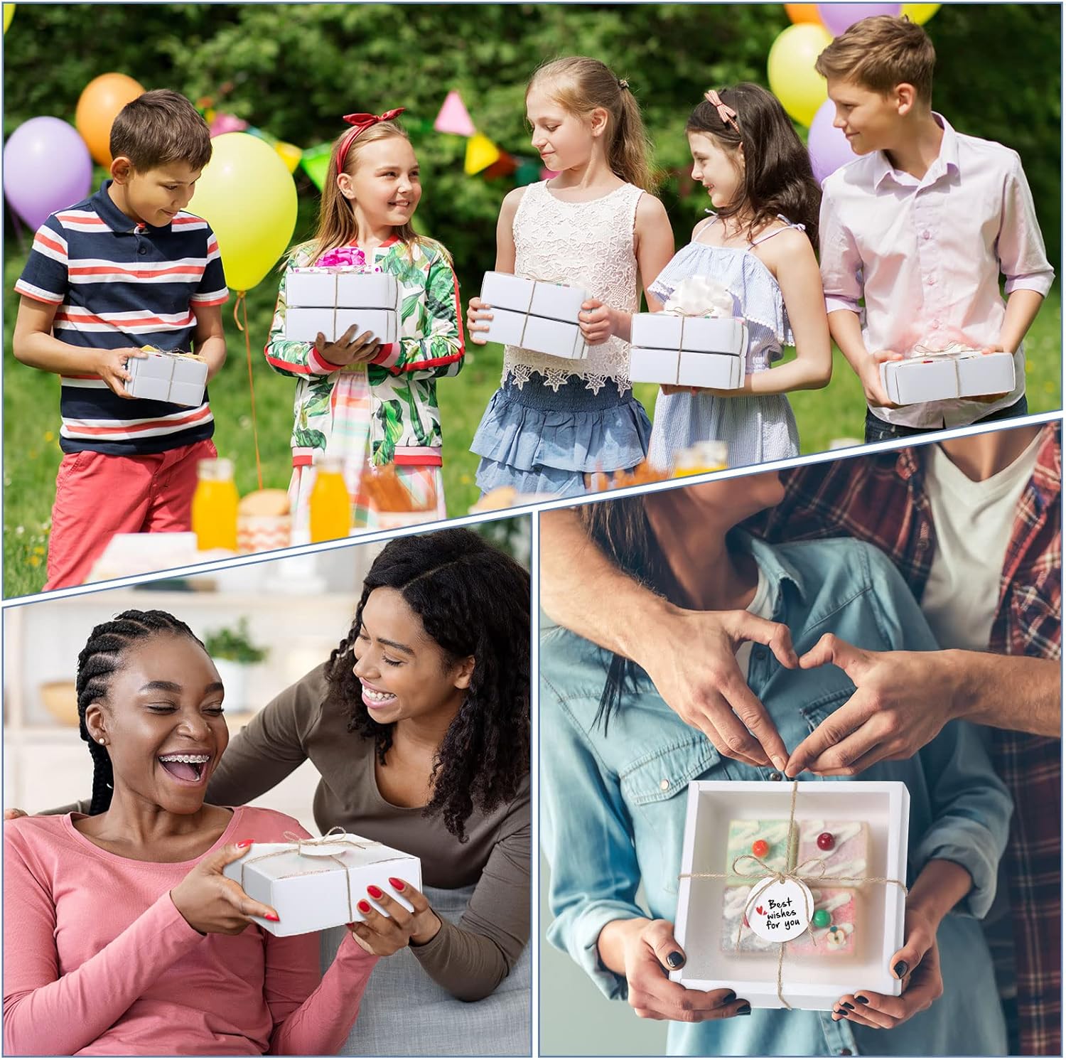 Roowest 50 Sets Kraft Soap Boxes Rectangle Packaging Box with Window Homemade Gift Box with Blank Tags and Jute String for Jewelry Candy Wrapping Party Favor(6.5 x 6.5 x 2 Inch,White)
