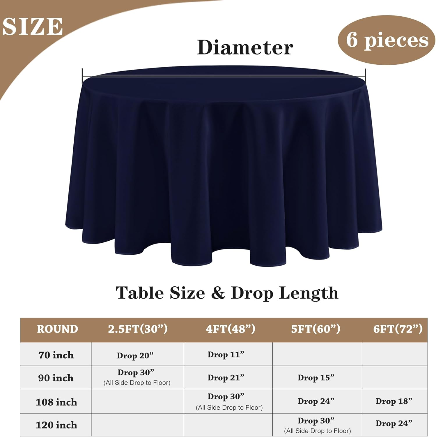 Fitable 6 Pack Navy Round Table Clothes - 90 Inches in Diameter - Stain Resistant and Washable Tablecloths, Polyester Fabric Table Covers for Wedding, Party, Banquet, Gathering