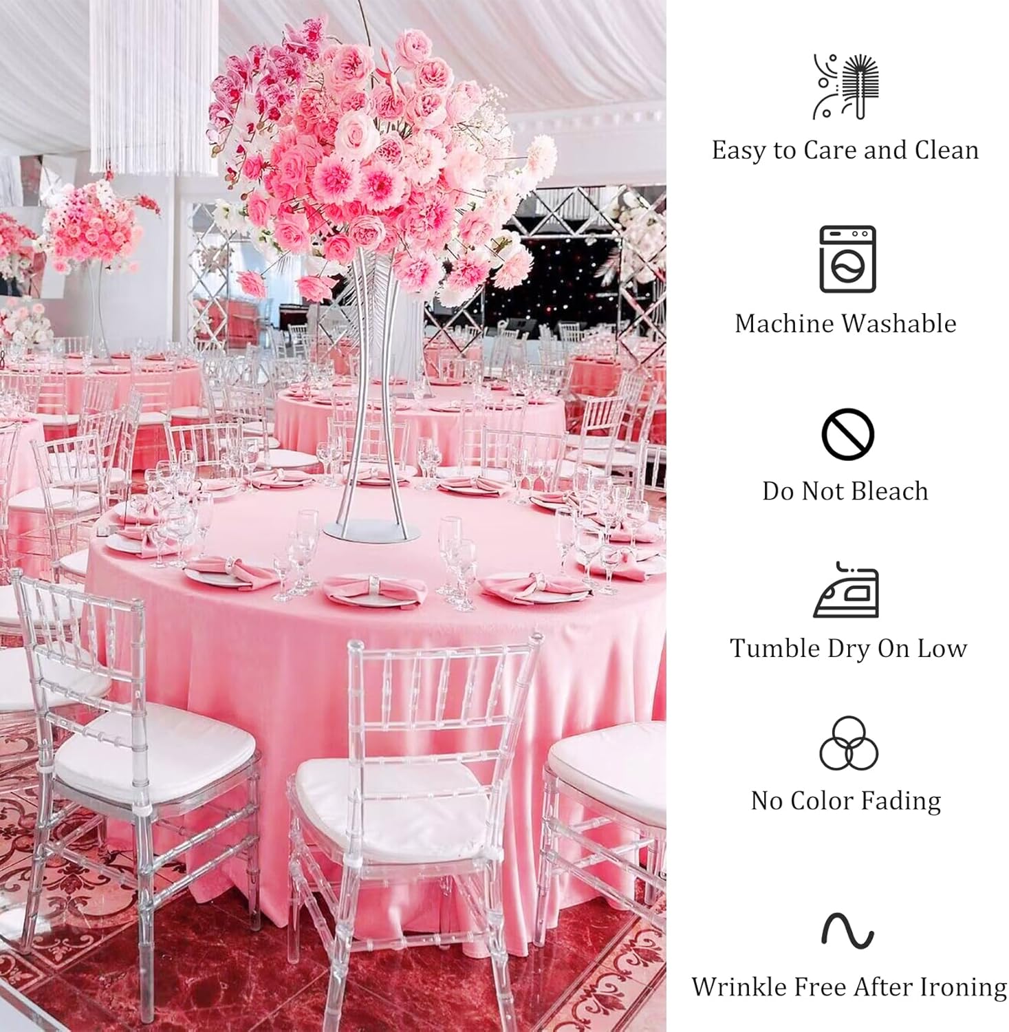 - Package Include: you will get 8 pieces pink polyester round tablecloth, enough quantity is suitable for wedding banquets and various parties, the size of each tablecloth is approximately 70 inches / 178 cm, which is large enough to cover 30" to 48" round tables, classic in color and exquisite in design, the solid color makes them suitable for various occasions, instantly heightening the elegance of your table.