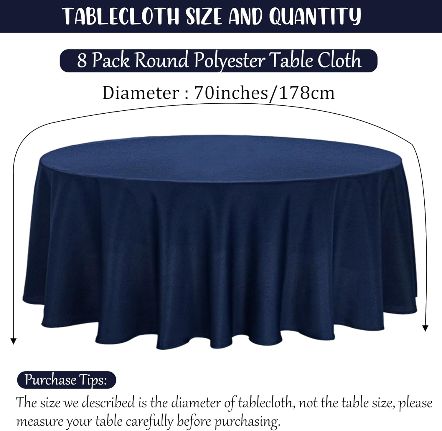 8 Pack Round Tablecloth 70 Inch Round Table Covers Bulk Washable Polyester Fabric Round Table Clothes for Wedding Party Reception Banquet Buffet Restaurant (Navy Blue, 70 Inch)