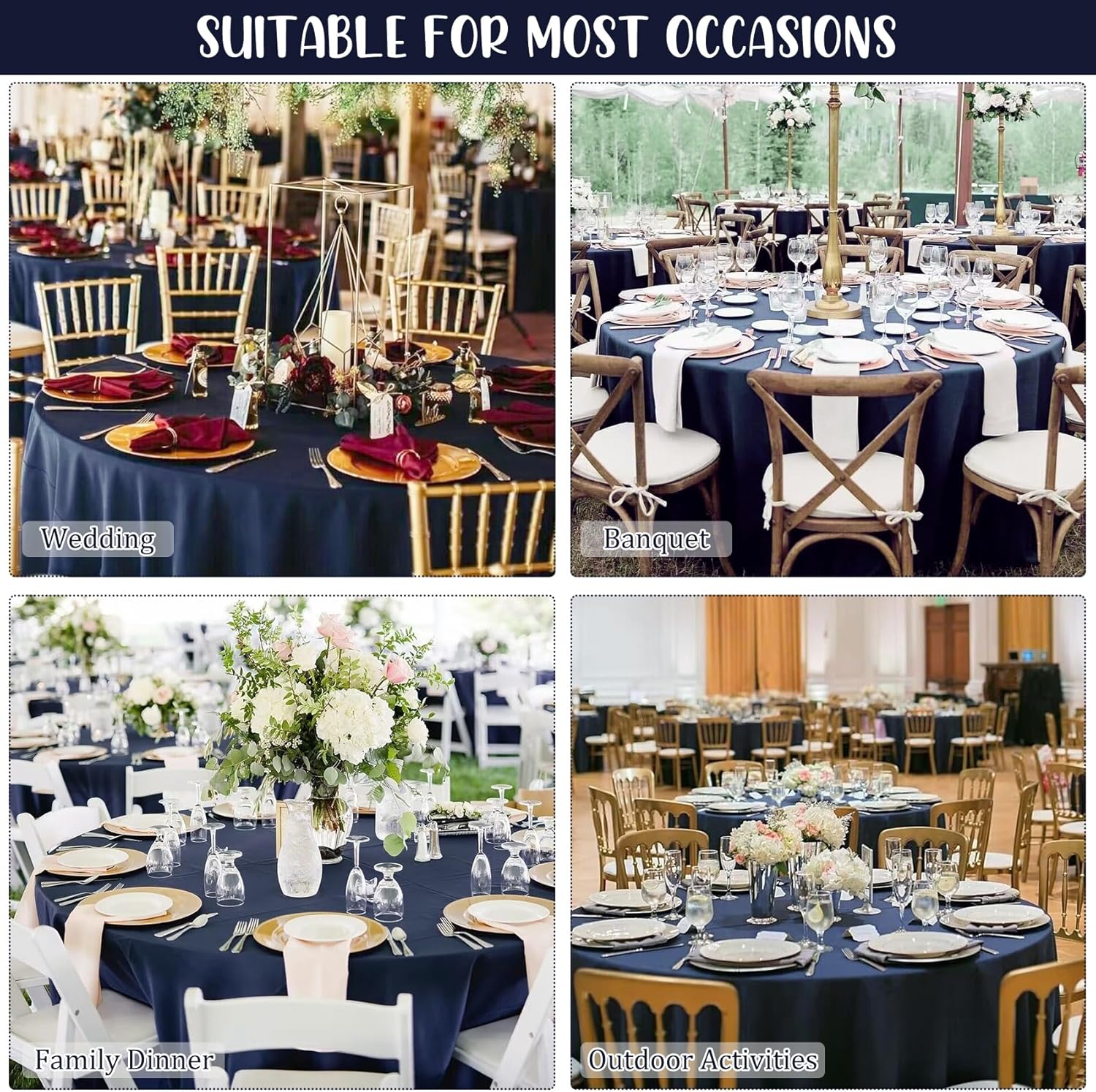 - Package Include: you will get 8 pieces navy blue polyester round tablecloth, enough quantity is suitable for wedding banquets and various parties, the size of each tablecloth is approximately 70 inches / 178 cm, which is large enough to cover 30" to 48" round tables, classic in color and exquisite in design, the solid color makes them suitable for various occasions, instantly heightening the elegance of your table.