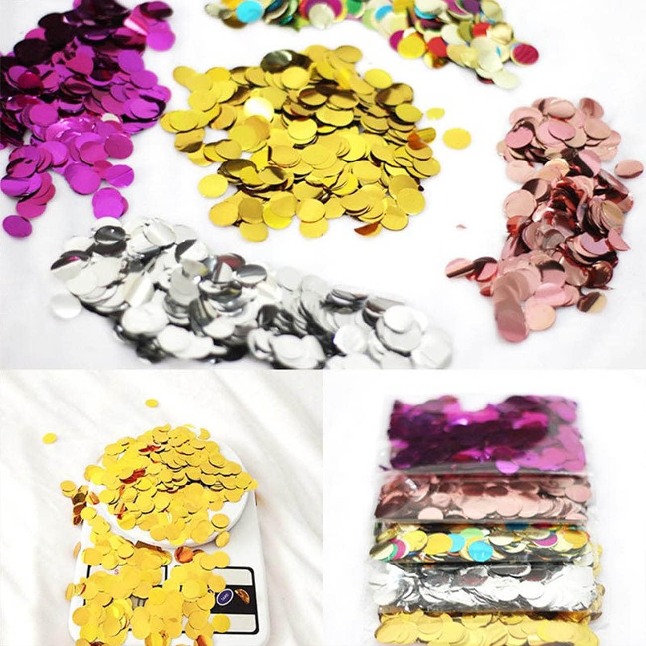 - These round confetti are 0.59 inch/ 1.5 cm in diameter,and they weighs about 2.11 OZ per pack