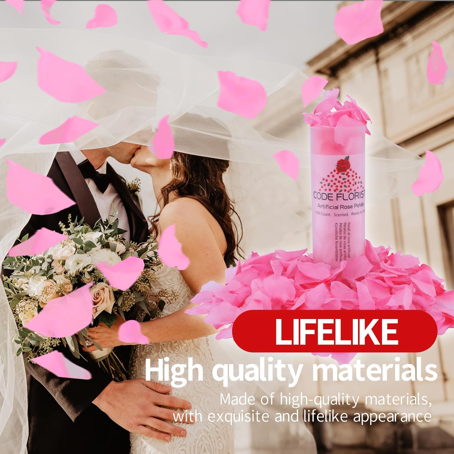CODE FLORIST 1100 PCS Silk Rose Petals for Valentine's Day,Fake Rose Petals for Romantic Night,Wedding,Proposal Anniversary Flower Decorations(Separated,Scented,Light Pink&Hot Pink)