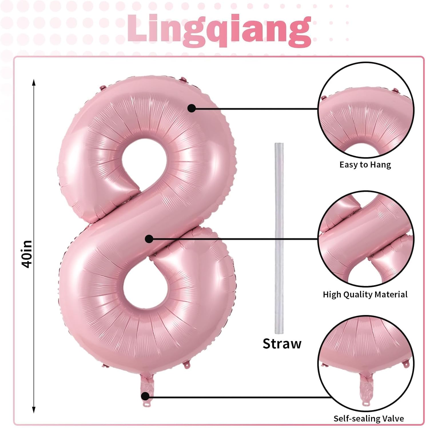 - π Pastel Pink Number 8 Balloon π - You will get 1pc 40 inch mylar foil number 8 balloon and 1pc straw. Perfect for 8th 18th 28th 80th 85th birthday or anniversary party decorations supplies.