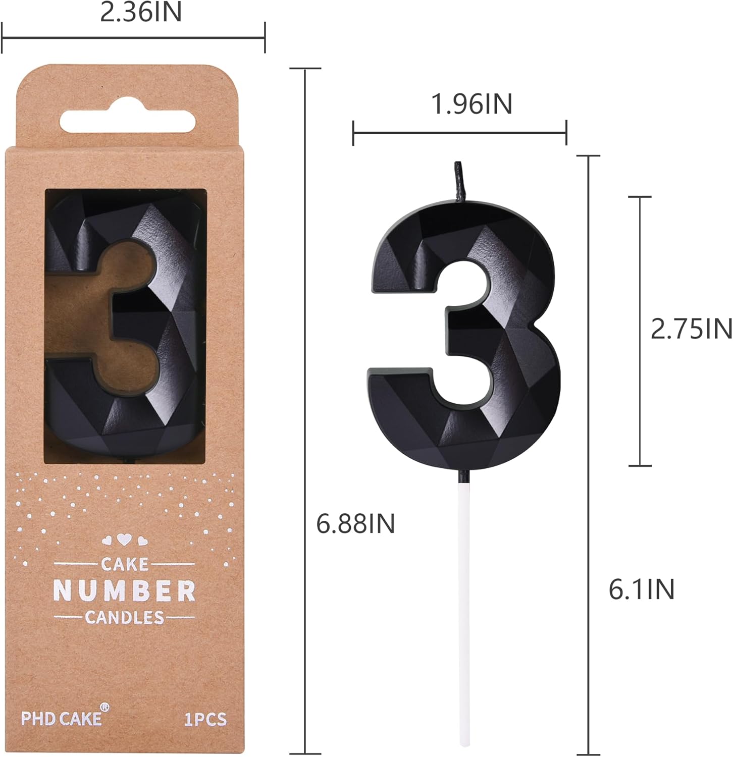 - New: 2.76 Inch Large Crystal Black 3 Number Birthday Candle designed to make your cake and birthday a unique and truly inspiring event.