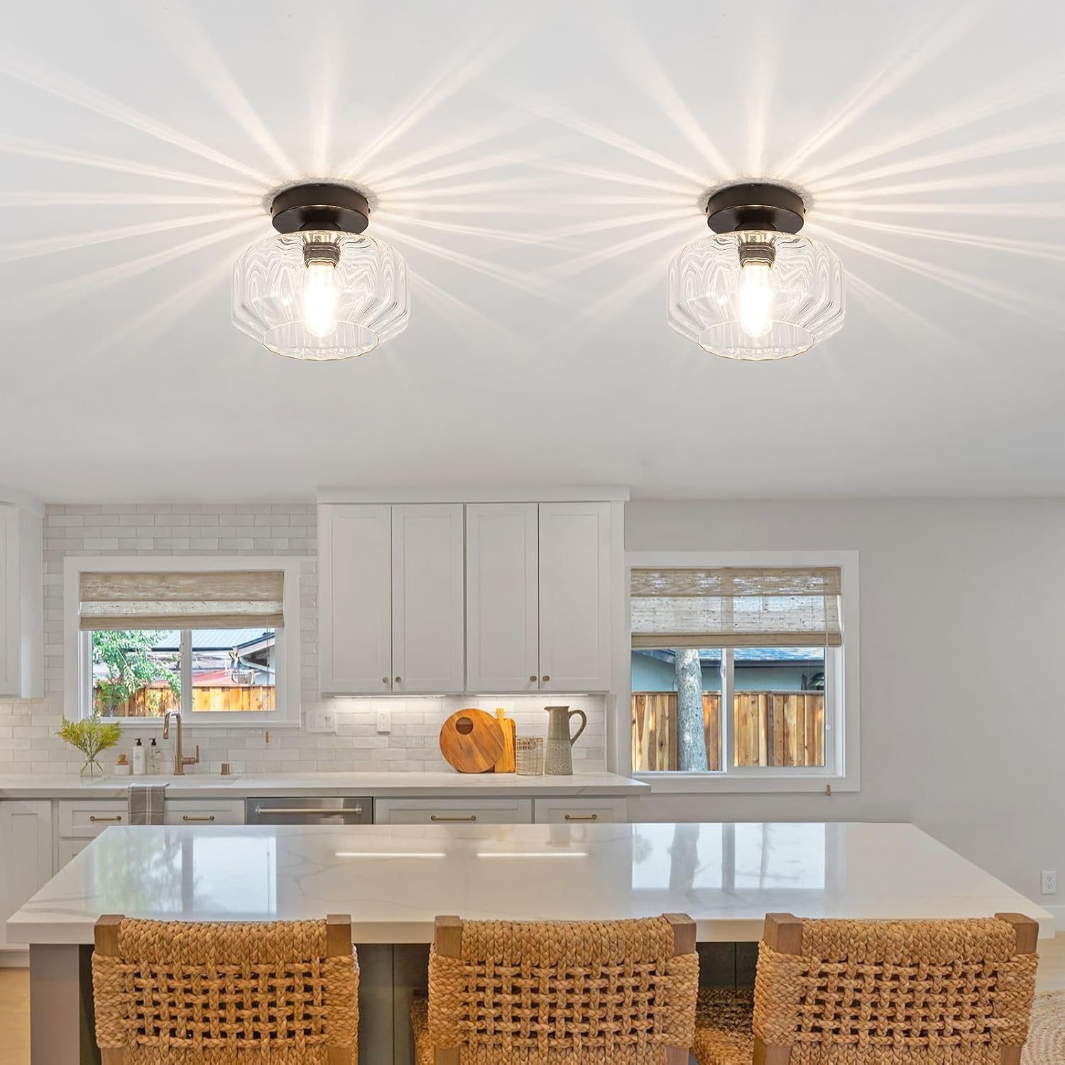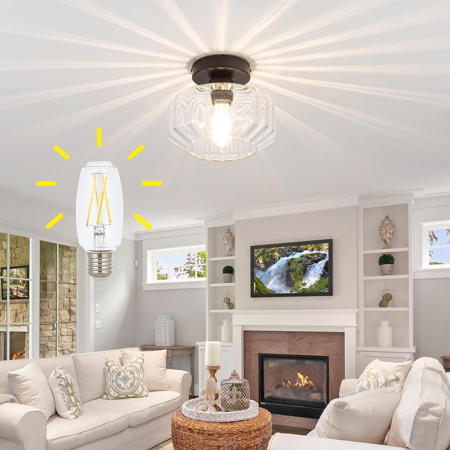 - π§ Easy Install & Low Maintenance: Simple installation makes setup a breeze. Easy-to-clean clear glass shade and wide accessibility simplify bulb changes (E26 base compatible). Ideal size flush mount (8.66"L x 4.72"W) fits perfectly in entryways, halls, foyers, or dining rooms.