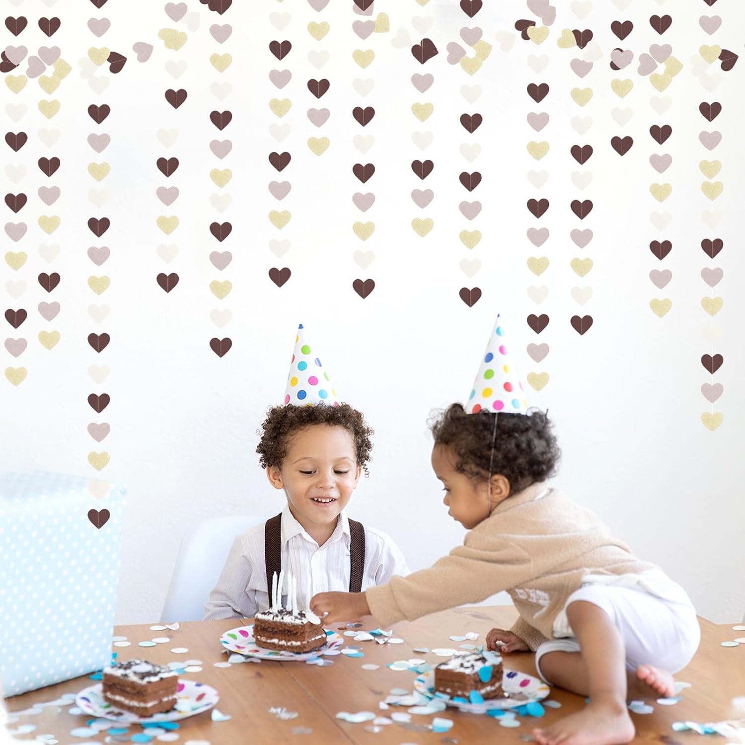 - 【Material】The material is eco-friendly colorful paper,brown champagne, nude pink,beige.You can cut to any length you want if you need shorter length.The hearts are cut very neatly.