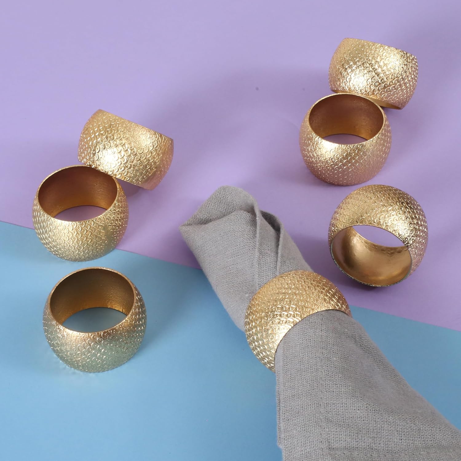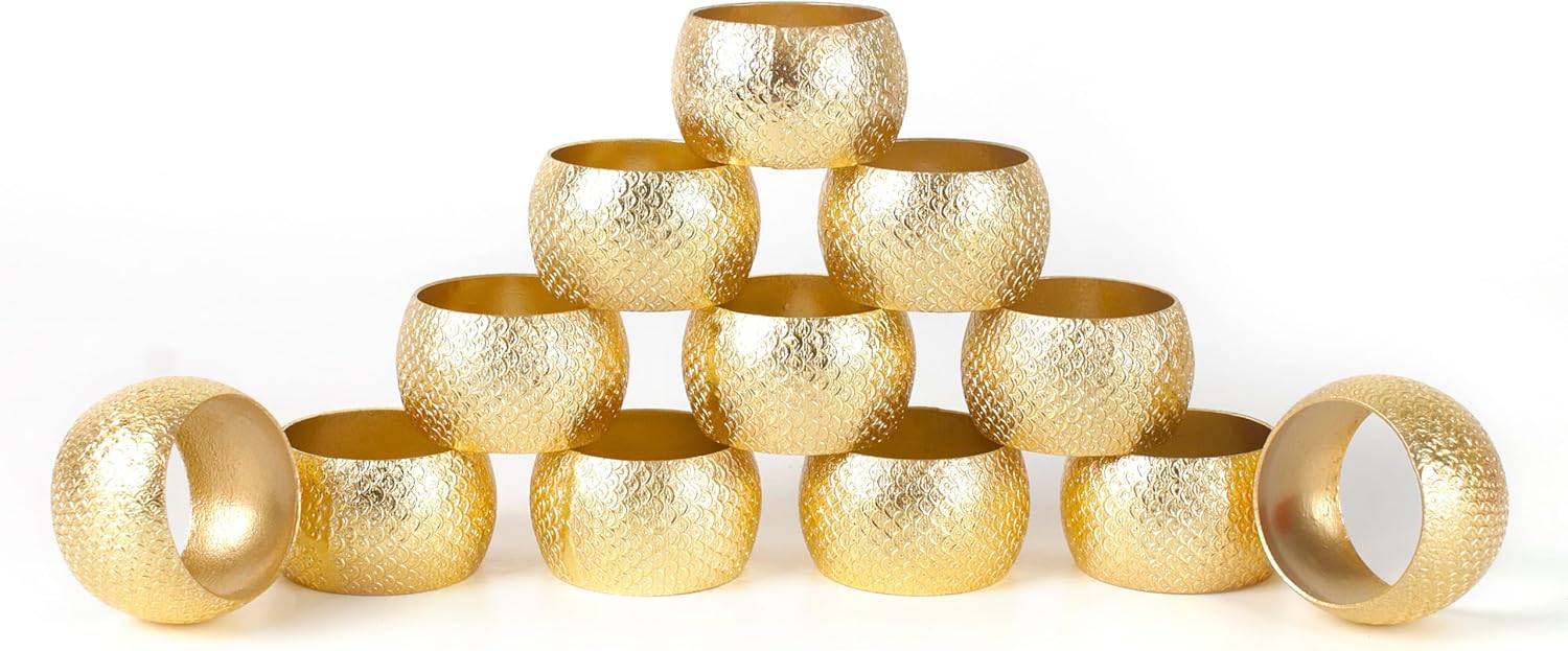 - β SET OF 12 -IDEAL SIZE FOR ALL NAPKINS: Each gold metal napkin ring measures 2 x 2 x 1 inches, designed to hold cloth or paper napkins with ease. Comes in a coordinated set of 12, perfect for creating a uniform and elevated table presentation.