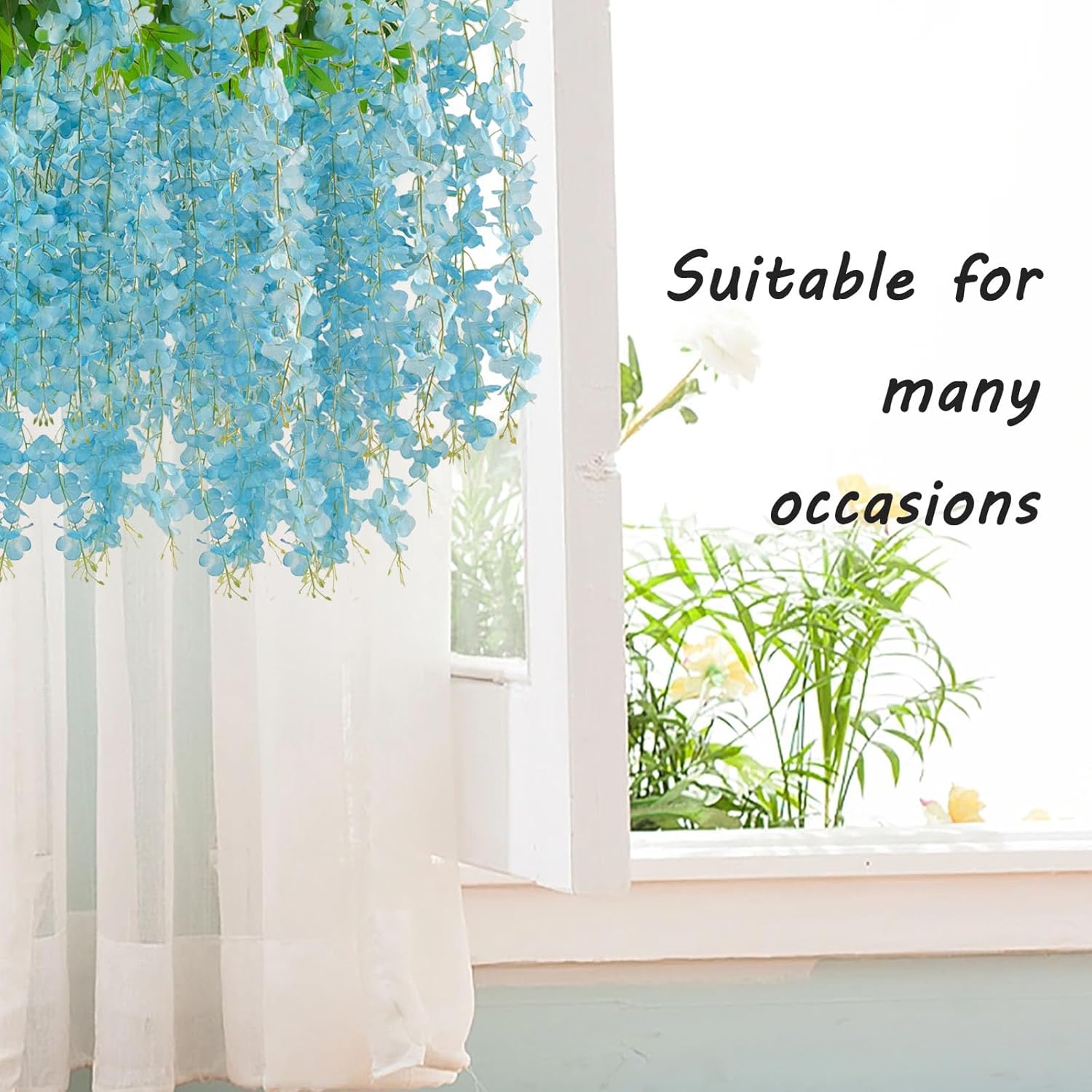 - 【Suitable for A Variety of Scenes】Lake blue Wisteria hanging flowers have a purely natural pattern design, realistic and natural, suitable for decorating living rooms, bedrooms, study rooms, and windowsill places, so that your living space into the natural atmosphere, become more comfortable. At the same time, they are also suitable for decorating dinner parties, birthday parties, weddings, and other places, to create a warm atmosphere, so that your guests leave a good and unforgettable memory.