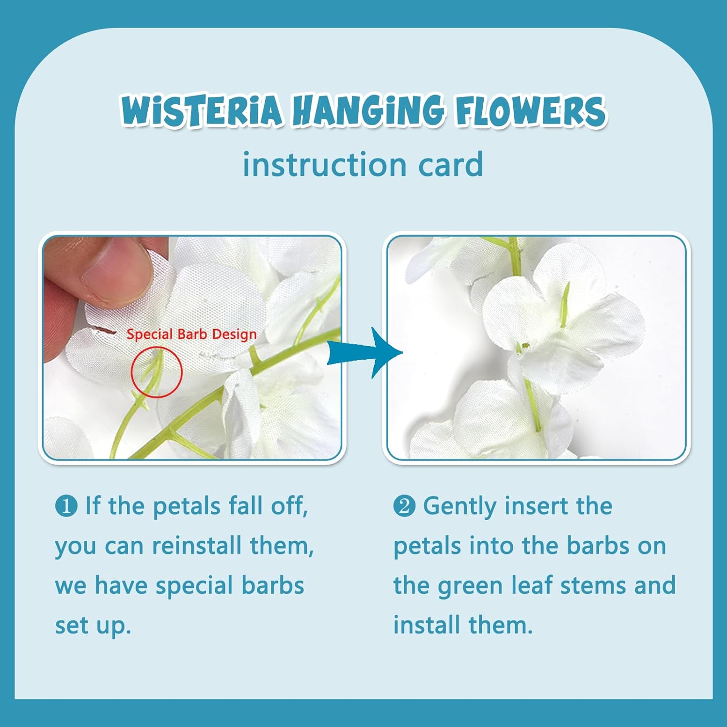 - 【Easy to Install】The lake blue hanging garland flowers stem are made of durable metal wire and covered with plastic. You can bend the wisteria flower in any shape to satisfy your decoration imagination without damaging it. And the wisteria flower is very easy to install and remove, you can reduce a lot of troubles on installation.