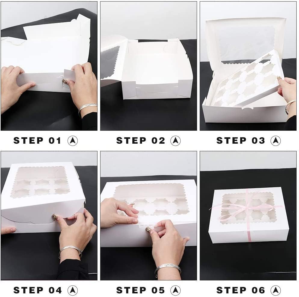 - Transparent Window: The cupcake box with a clear window at the top to display your delicious pastries and keep them fresh. The window is glued firmly, so don't worry about falling off.