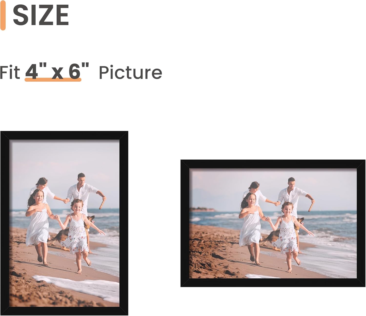 - Size: One wall black photo frame fits 4x6 photo without mat, can be hung horizontally or vertically.