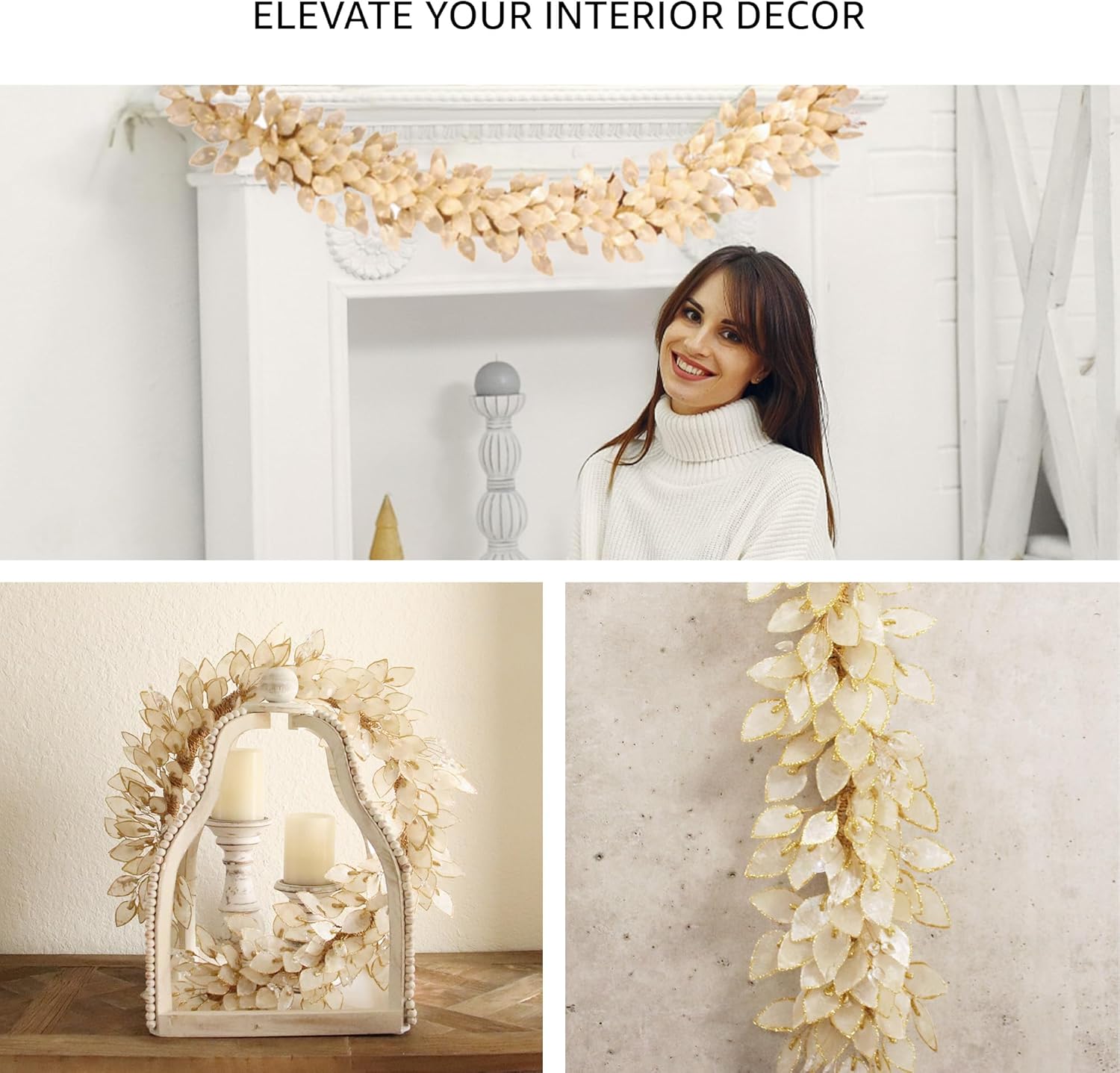- Artisanal Craftsmanship: Each glitter-edged shell leaf is hand-cut and thoughtfully strung together, showcasing meticulous craftsmanship and attention to detail.