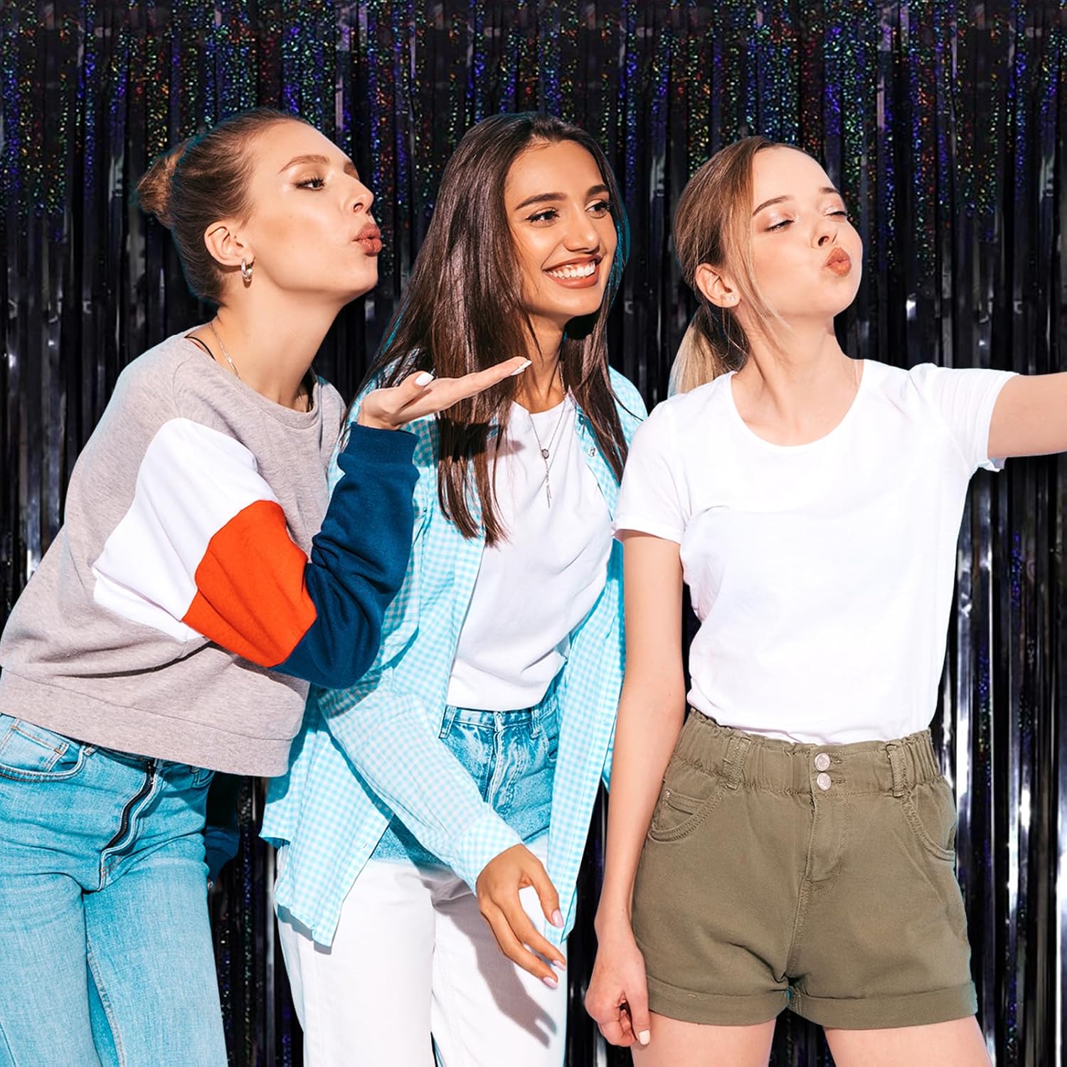 - Easy To Assemble | Strong Adhesive | Not Easy Fade : The foil fringe curtain backdrop party decorations come with double-sided adhesive tape, easy to use, just tear off the back of adhesive tape, then paste this streamers backdrop curtains on the top of wall, window, table, or as door fringe decoration.