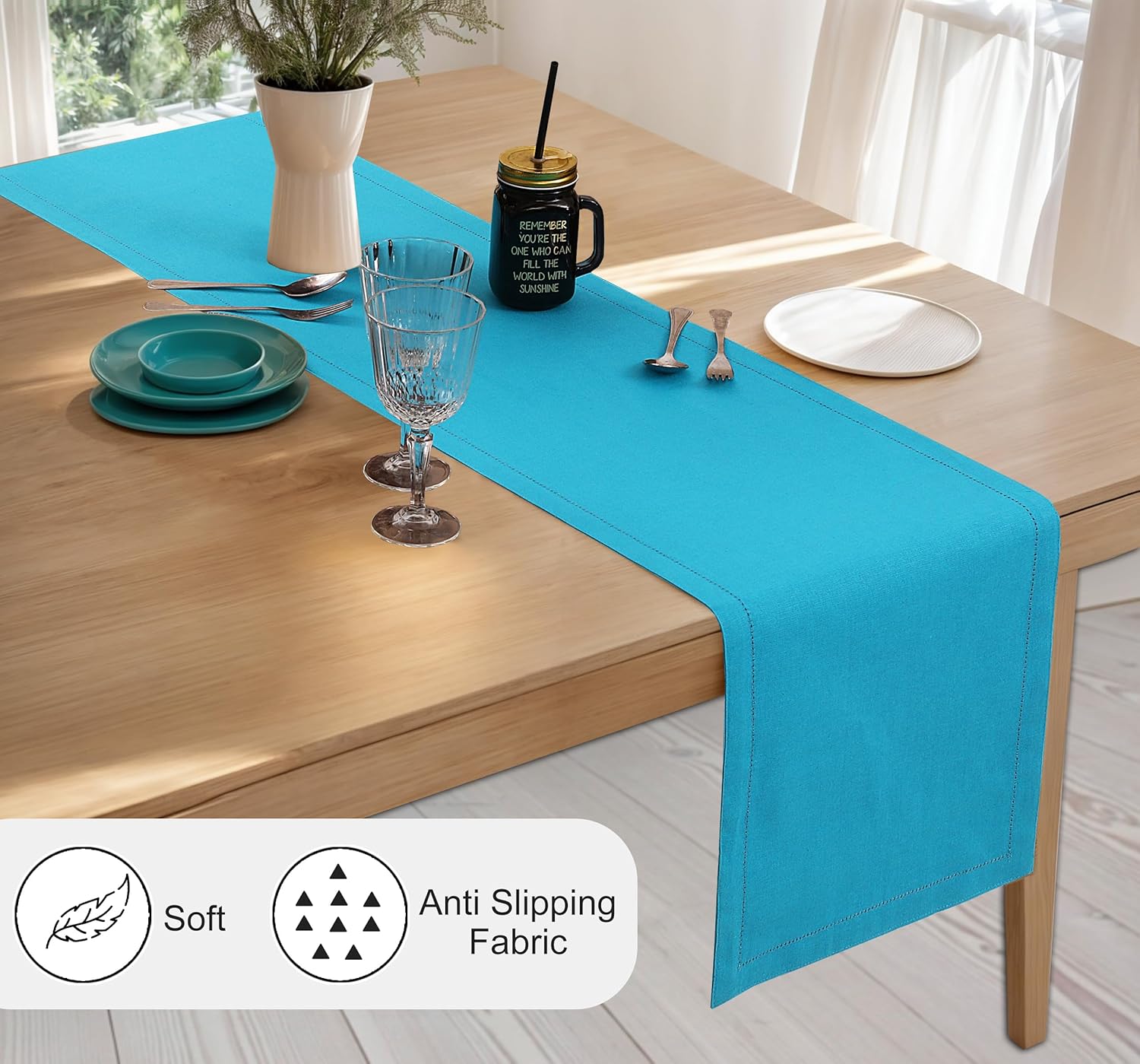 - Premium Material & Anti-Slipping Fabric: These table runners are made with a high-quality blend of 20% flax linen and 80% cotton fabric, known for their exceptional durability and anti-slip properties. Designed to last, these dining table runners feature a breathable texture that softens with time. The classic hemstitching and Mitered corners prevent fraying, adding a sophisticated touch to your table decor.
