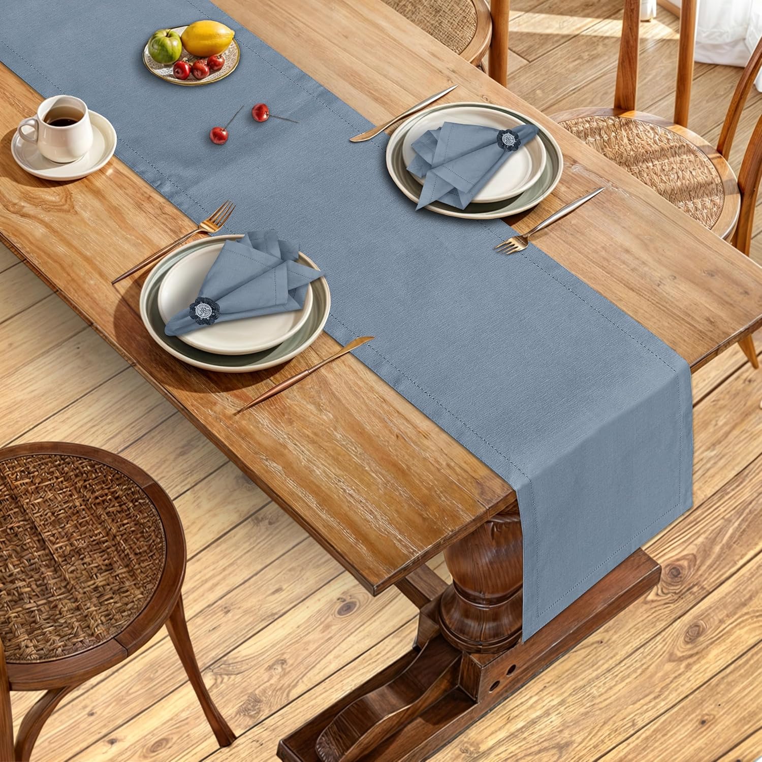 - Premium Material & Anti-Slipping Fabric: These table runners are made with a high-quality blend of 20% flax linen and 80% cotton fabric, known for their exceptional durability and anti-slip properties. Designed to last, these dining table runners feature a breathable texture that softens with time. The classic hemstitching and Mitered corners prevent fraying, adding a sophisticated touch to your table decor.