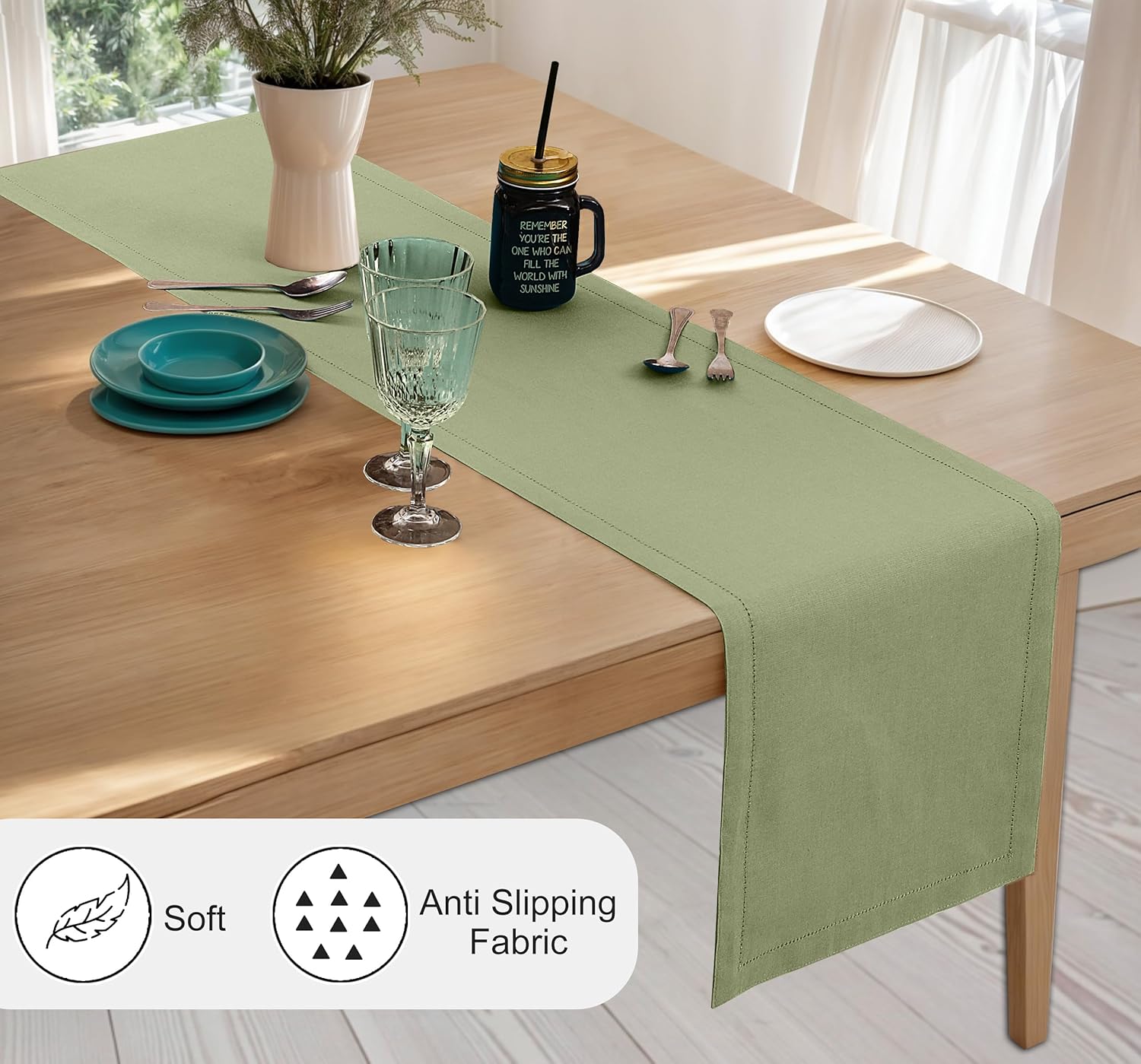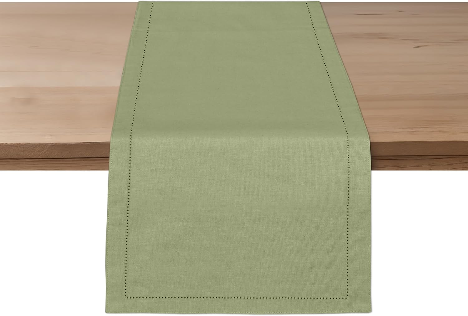Ruvanti Linen Table Runner 90 Inches, Classic Hemstitch, Washable, Reusable, Non-Slipping, Stain Resistant- Perfect for Parties, Weddings, Dinners, Thanksgiving, Christmas, Indoor use – Olive