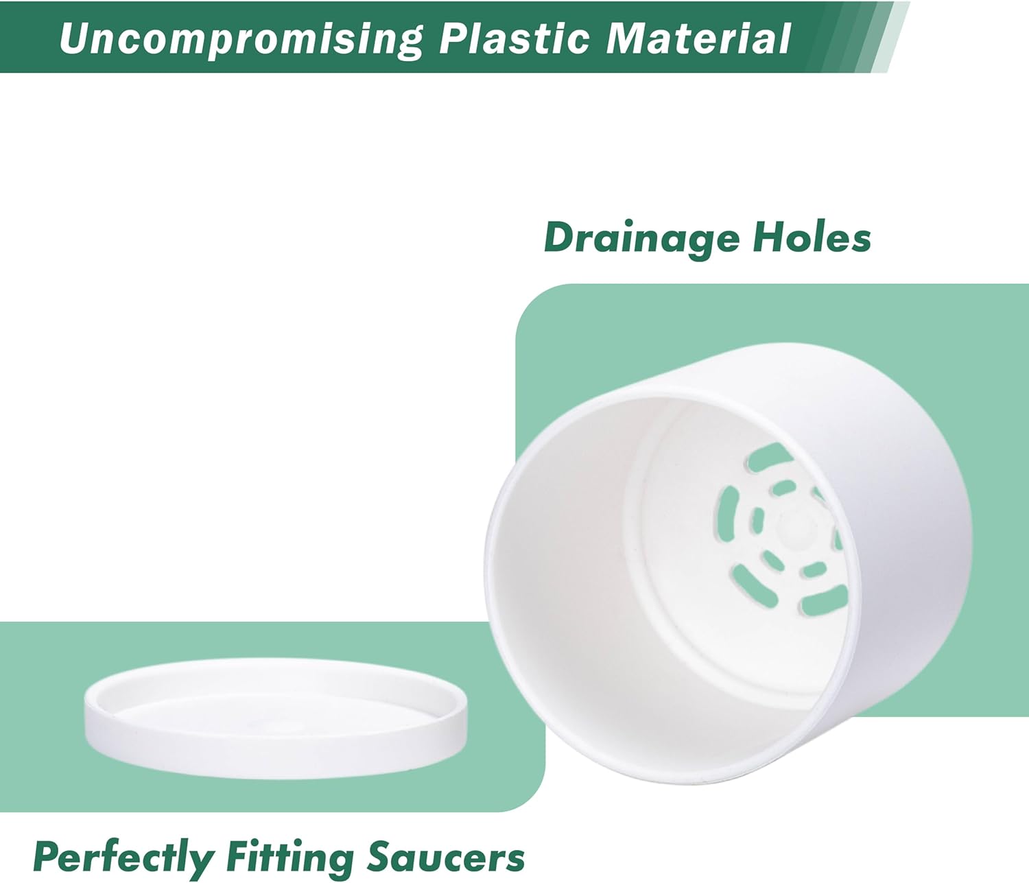 - What's Included: Set of 12 white plastic pots with saucers, 3" in Opening Diameter, 3" in Height. Please double-check the size before ordering to ensure it meets your needs.