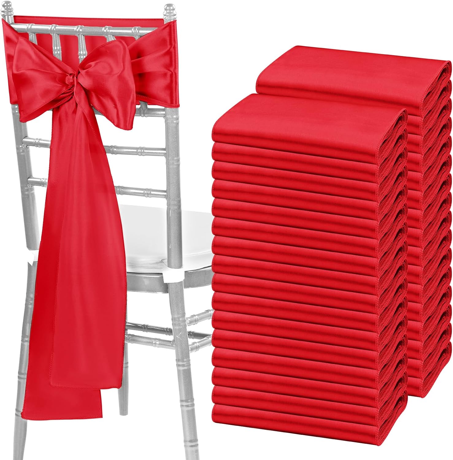 fani 120 PCS Red Satin Chair Sashes Bows Universal Chair Cover for Wedding Reception Restaurant Event Decoration Banquet,Party,Hotel Event Decorations (7 x 108 inch)