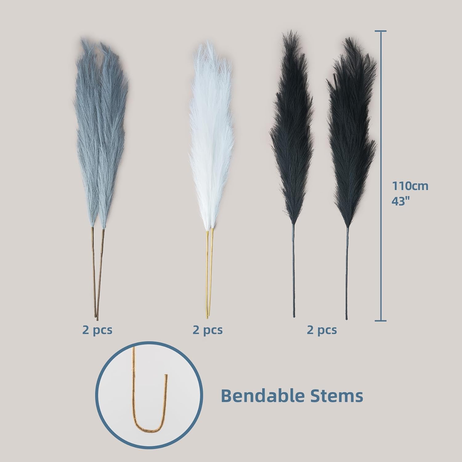 EVODIS Pampas Grass Decor Tall, 43"/110cm Faux Pampas Grass 6 Stems Large Pompass Grass Branches Tall Bulk Boho Flower Arrangement for Home Room Wedding Party Decor