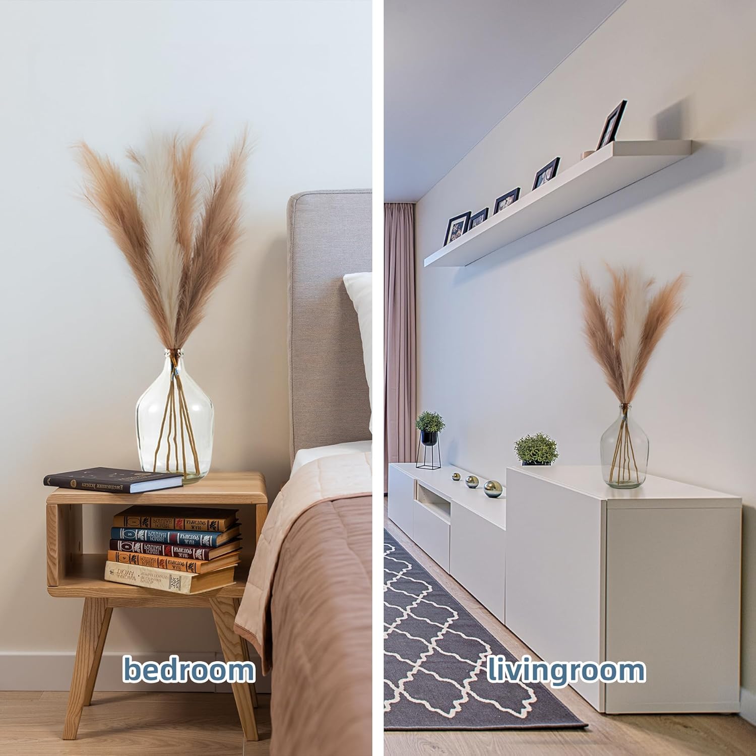 - Great Alternative for Real Pampas: Unlike dried pampas grass, our pompous grass does not shed like the real version, the long fibers on each stick are tied so strongly that they do not fall off. No allergens, no smell, without the maintenance cleaning and will last a long time
