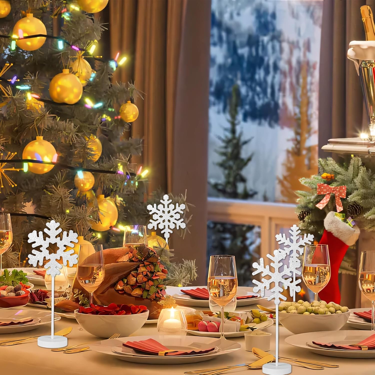 - Easy to Assemble and Store: Our winter snowflake decorations are easy to assemble and can be set up on any flat surface. They are composed of three parts: glitter snowflake shaped blocks, long sticks, and wooden base, which is convenient to carry and store. They will add luster to your Christmas party and can be prepared as intelligent gifts.