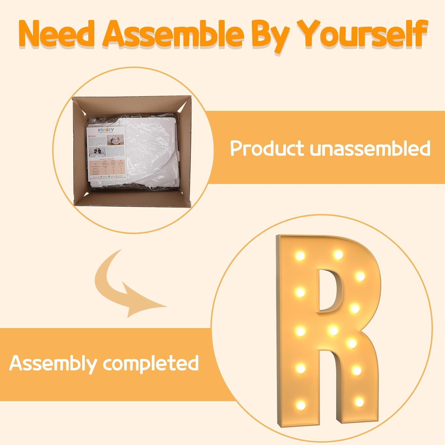 - Assembly Required: Our large marquee letters is made from foam board and easy to assemble with our splicing mode. Just follow the numbered instructions to align and insert the bottom plate, and reinforce it with a hot glue gun. Then, you're done!