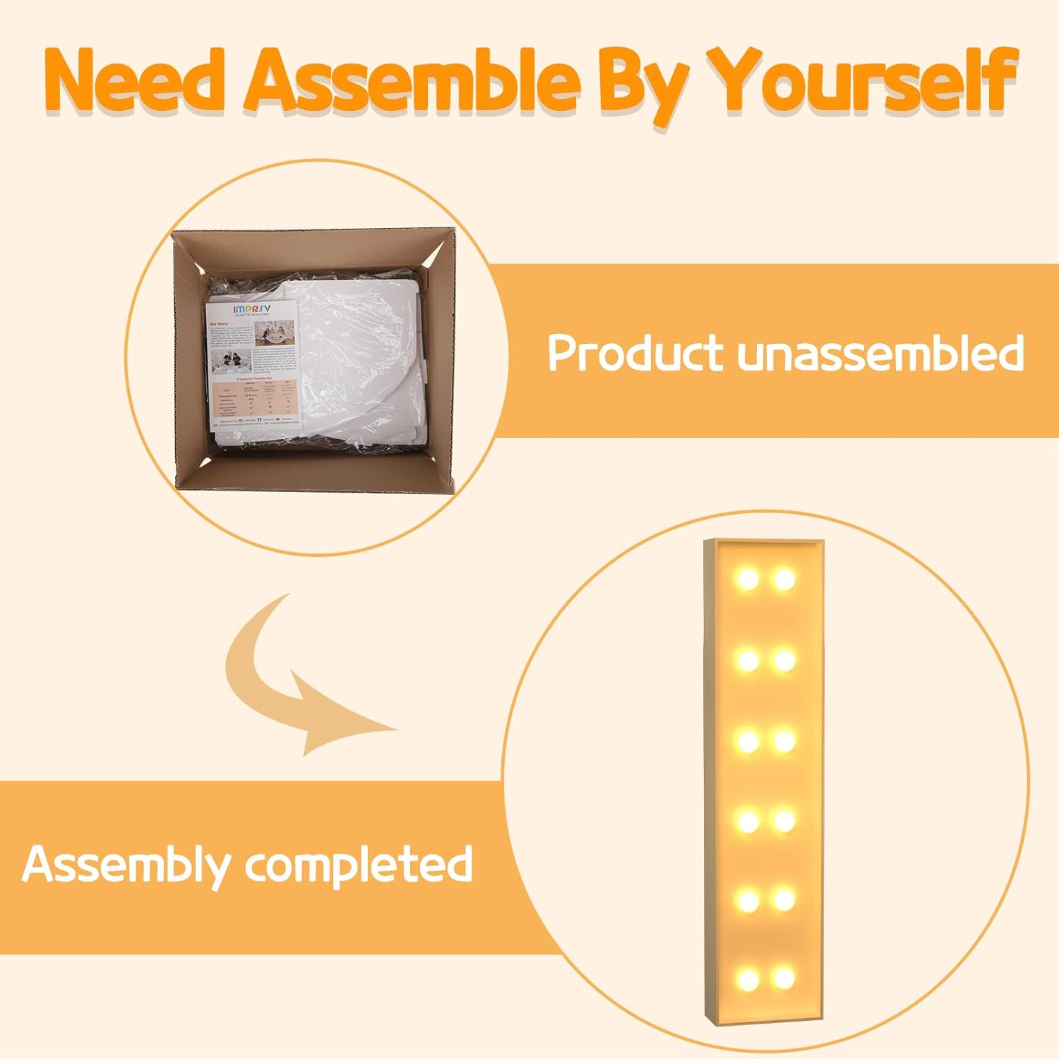 - Assembly Required: Our large marquee letters is made from foam board and easy to assemble with our splicing mode. Just follow the numbered instructions to align and insert the bottom plate, and reinforce it with a hot glue gun. Then, you're done!