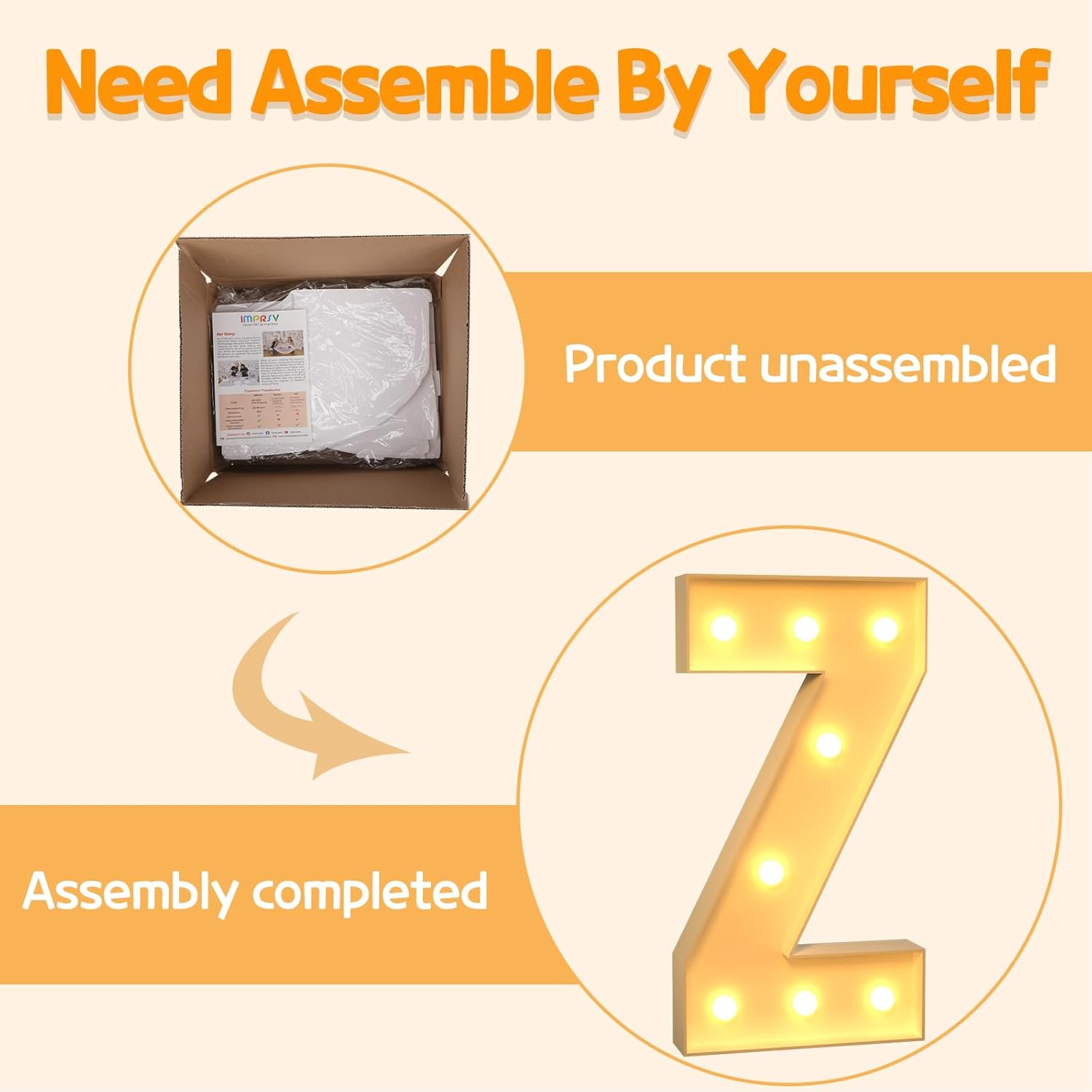 - Assembly Required: Our large marquee letters is made from foam board and easy to assemble with our splicing mode. Just follow the numbered instructions to align and insert the bottom plate, and reinforce it with a hot glue gun. Then, you're done!