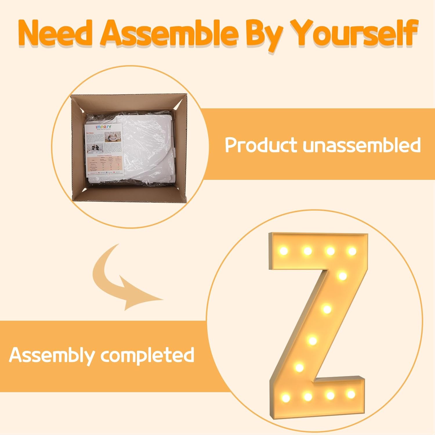 - Assembly Required: Our large marquee letters is made from foam board and easy to assemble with our splicing mode. Just follow the numbered instructions to align and insert the bottom plate, and reinforce it with a hot glue gun. Then, you're done!