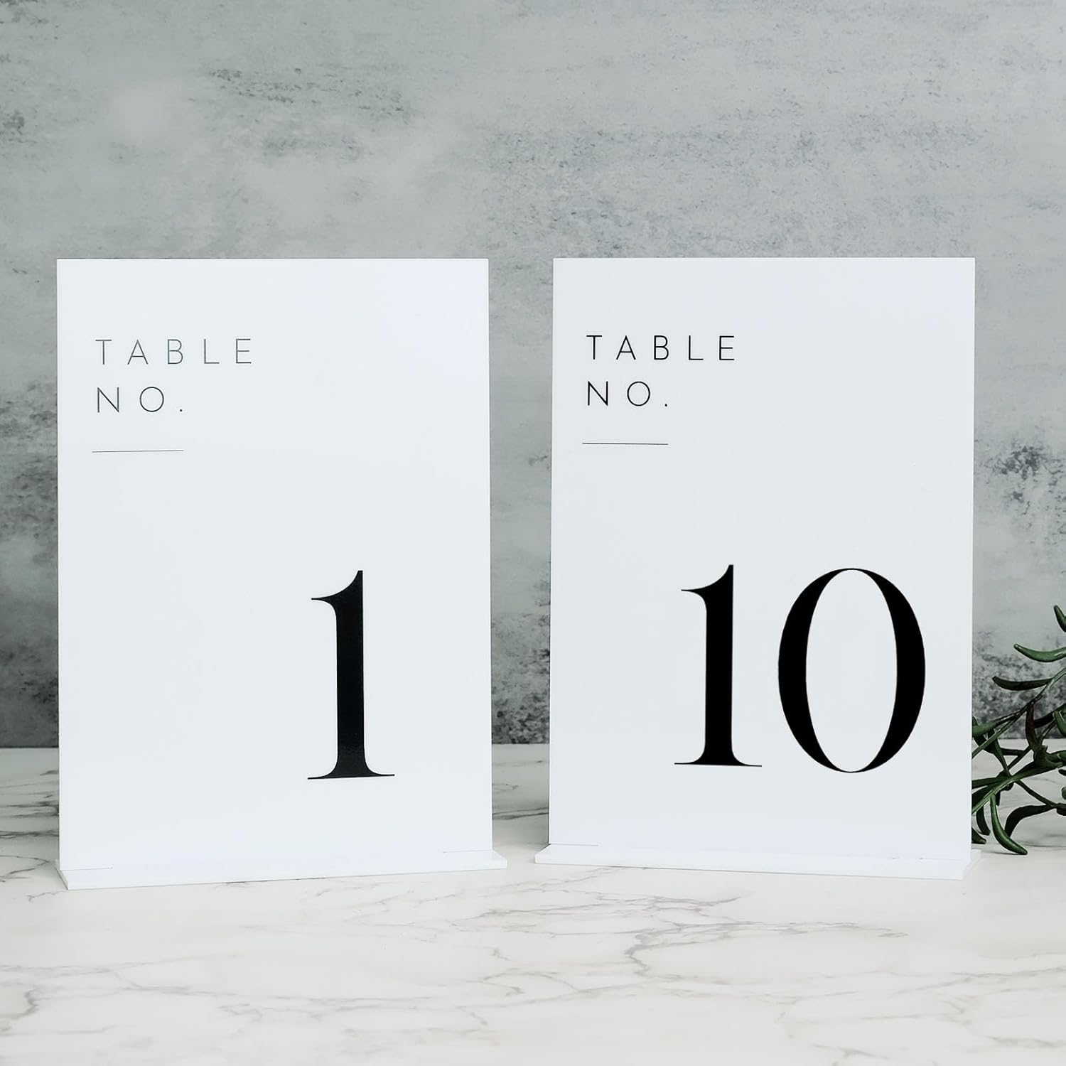 - MINIMALISTIC STYLE DESIGN: These modern minimalistic acrylic table number sign are the perfect touch to add to your wedding. We love the sleek, clean lines of these acrylic signs, they are a beautiful wedding table centerpieces decorations, perfect for displaying on tabletop centerpiece.
